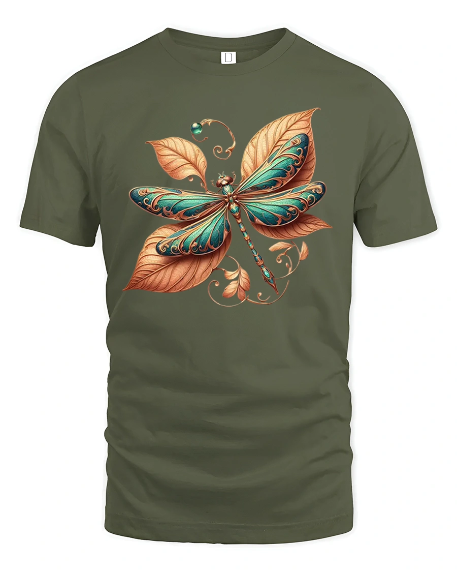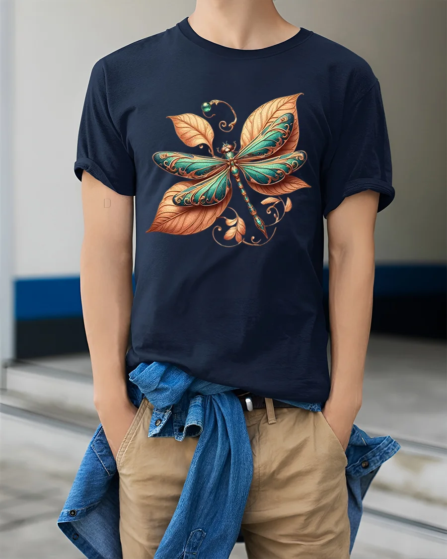 The Elegant Dragonfly Leaf Art Tee Nature Inspired Graphic T Shirt blends graceful motion with natural beauty in a striking artistic design.
