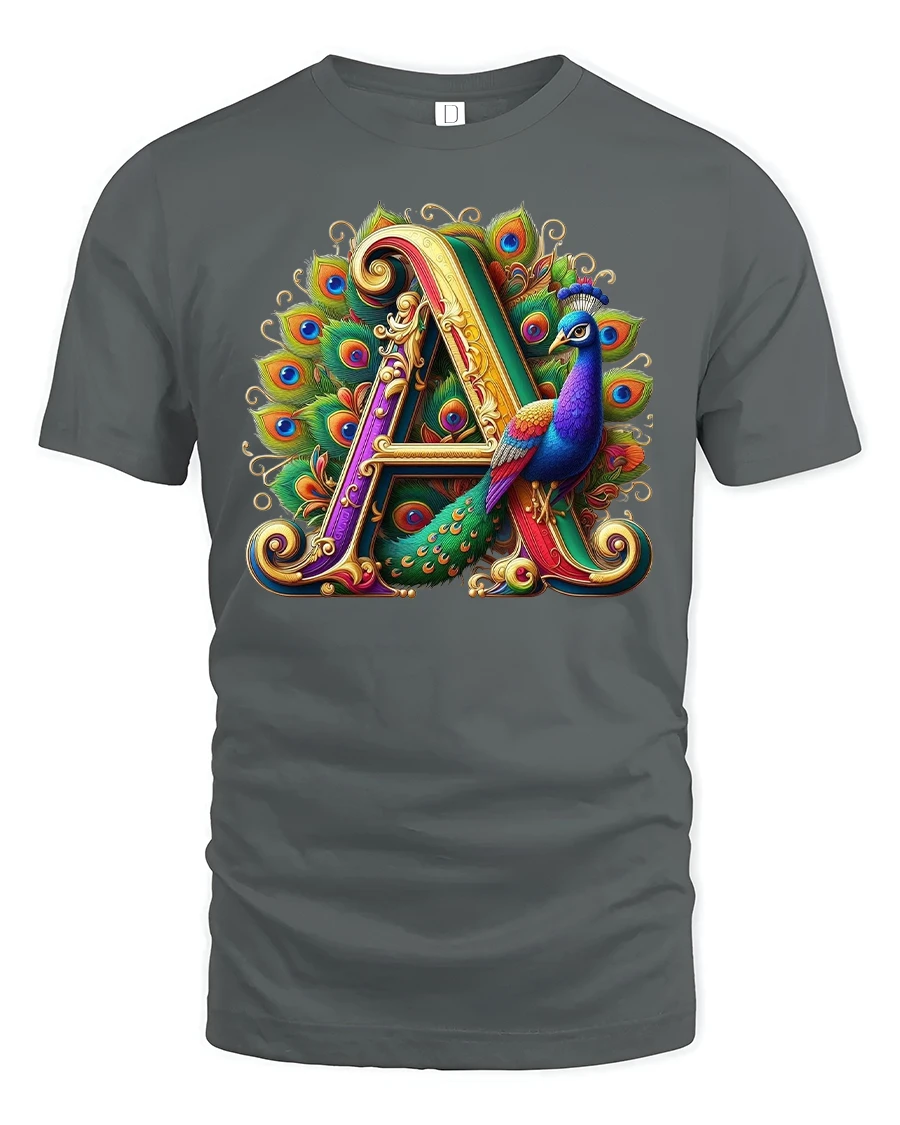 Made from premium fabric, this graphic tee offers comfort, durability, and long-lasting color vibrancy. The intricate details of the letter A and the stunning peacock design give it a unique and fashionable appeal, making it an excellent choice for casual outings, parties, or as a thoughtful gift for someone whose name starts with A.