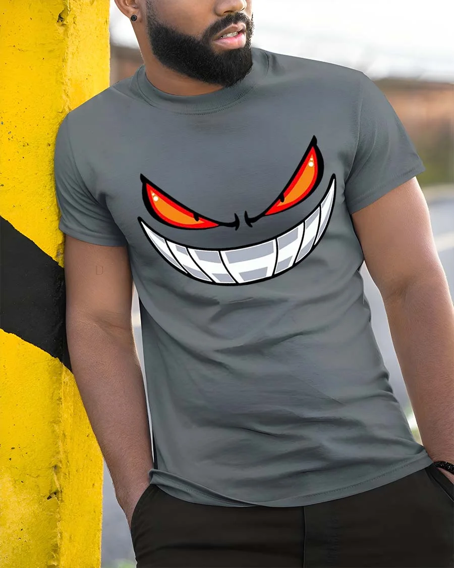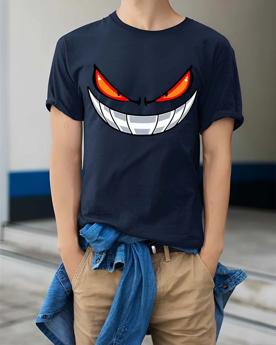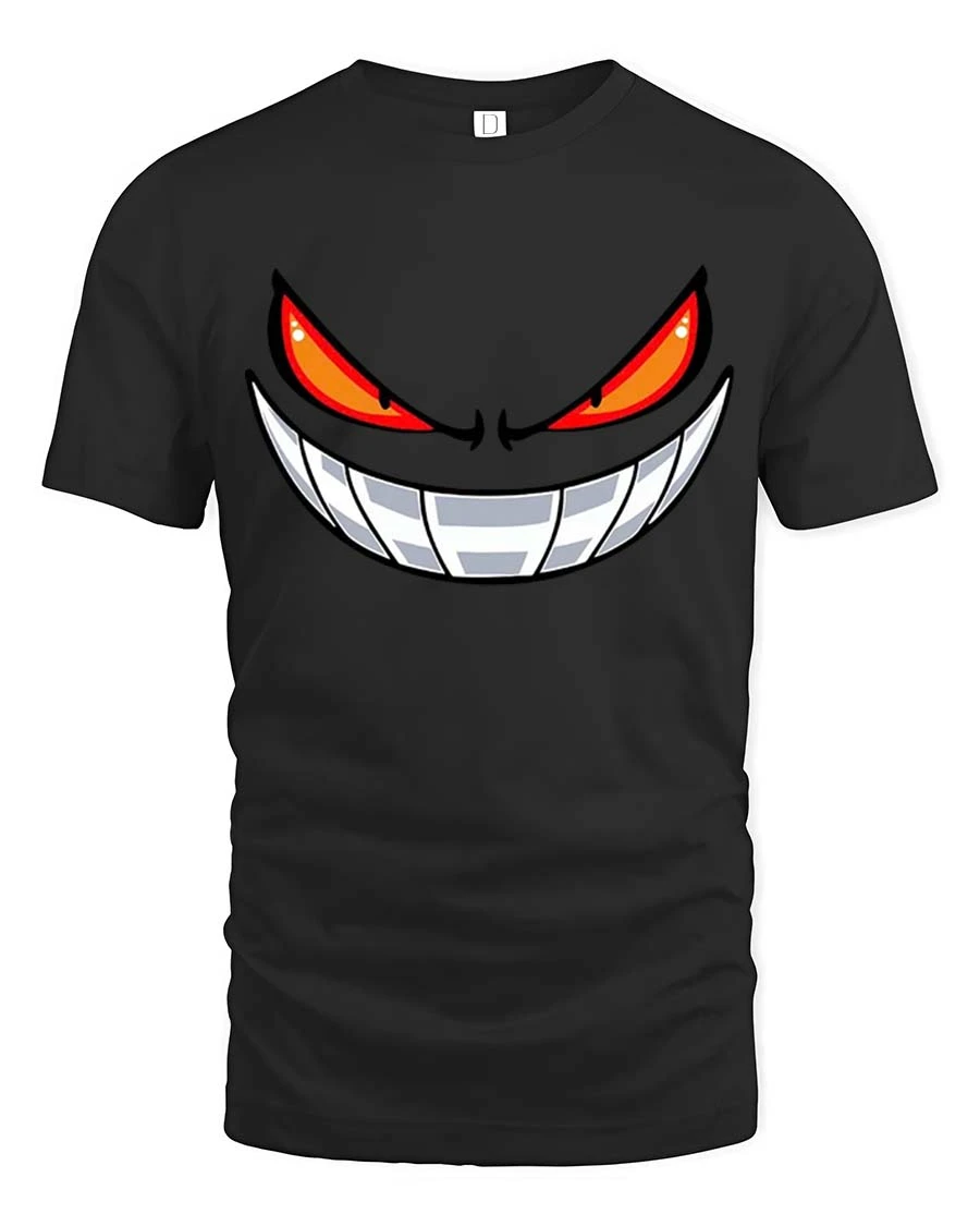 The Evil Smile Red Eyes Monster Face Graphic T-Shirt features a bold and sinister grin with glowing red eyes that creates an instantly striking look. The minimalist design focuses on the intense expression, giving the shirt a mysterious and slightly mischievous vibe that stands out on dark fabric.