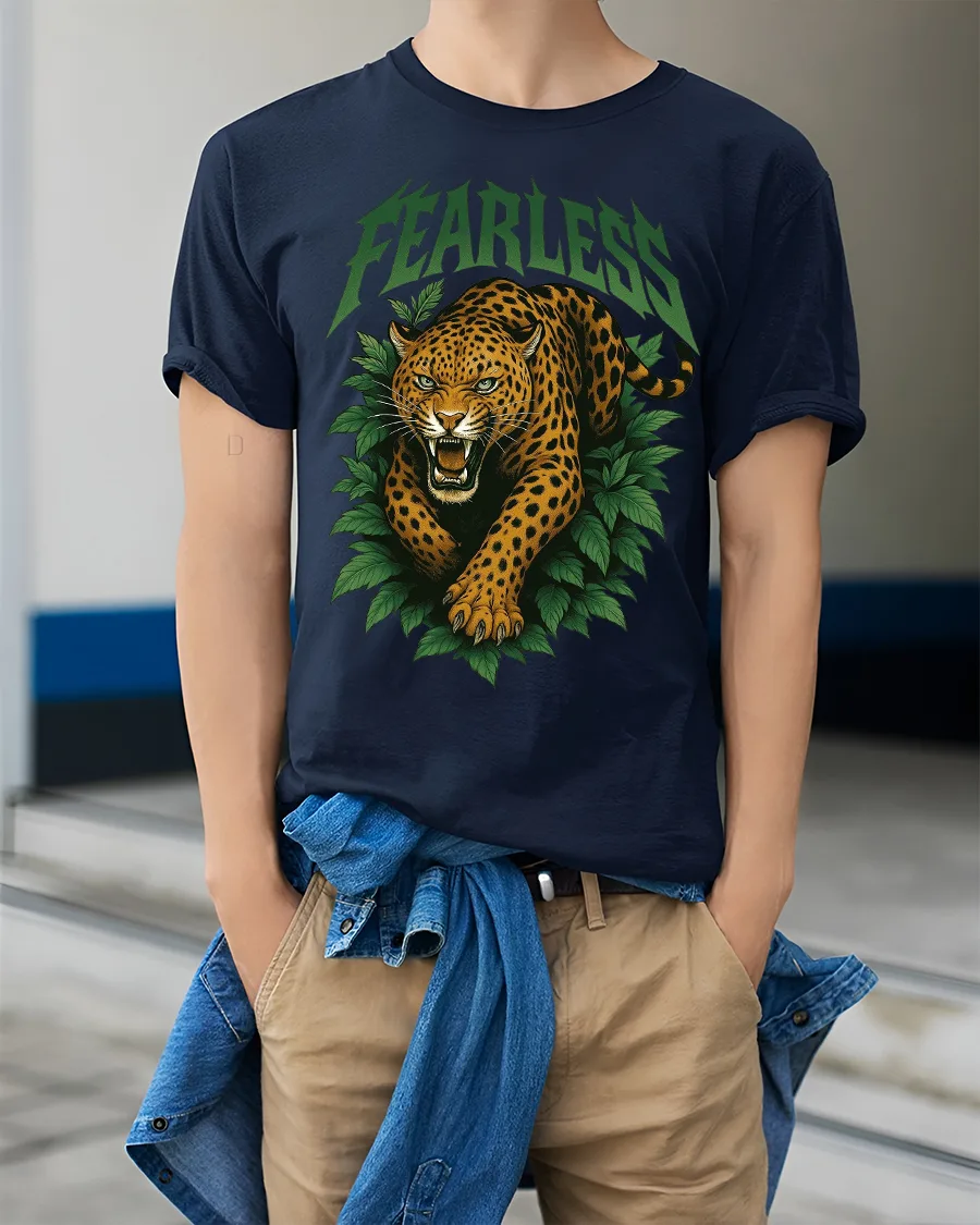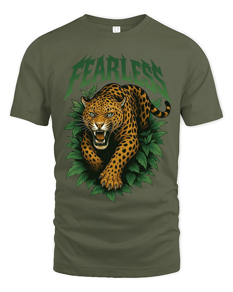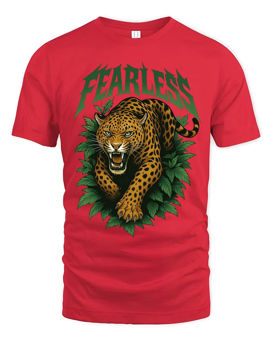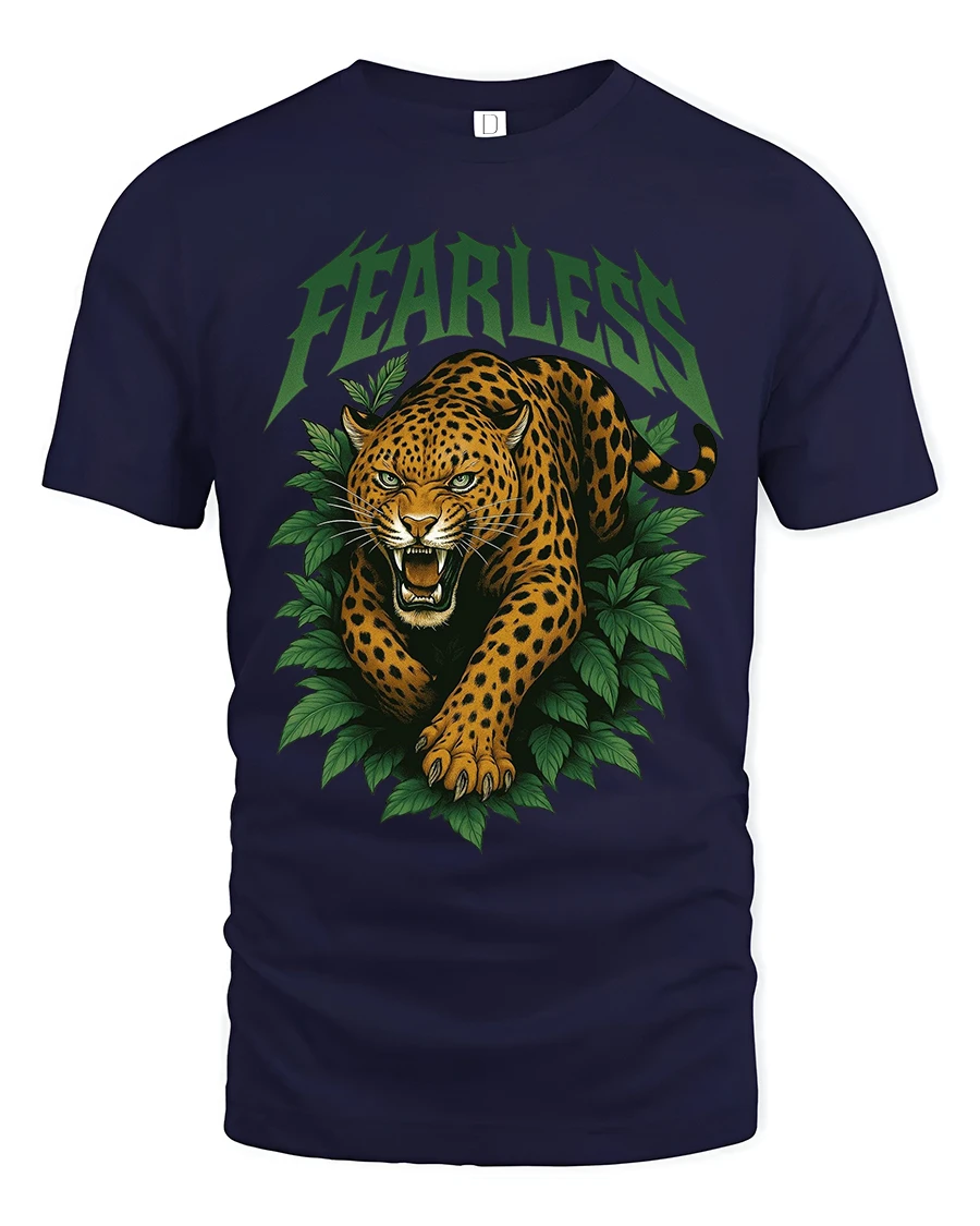 Fearless Leopard Graphic Tshirt Wild Jungle Power Art Tee pairs effortlessly with jeans joggers or streetwear looks.