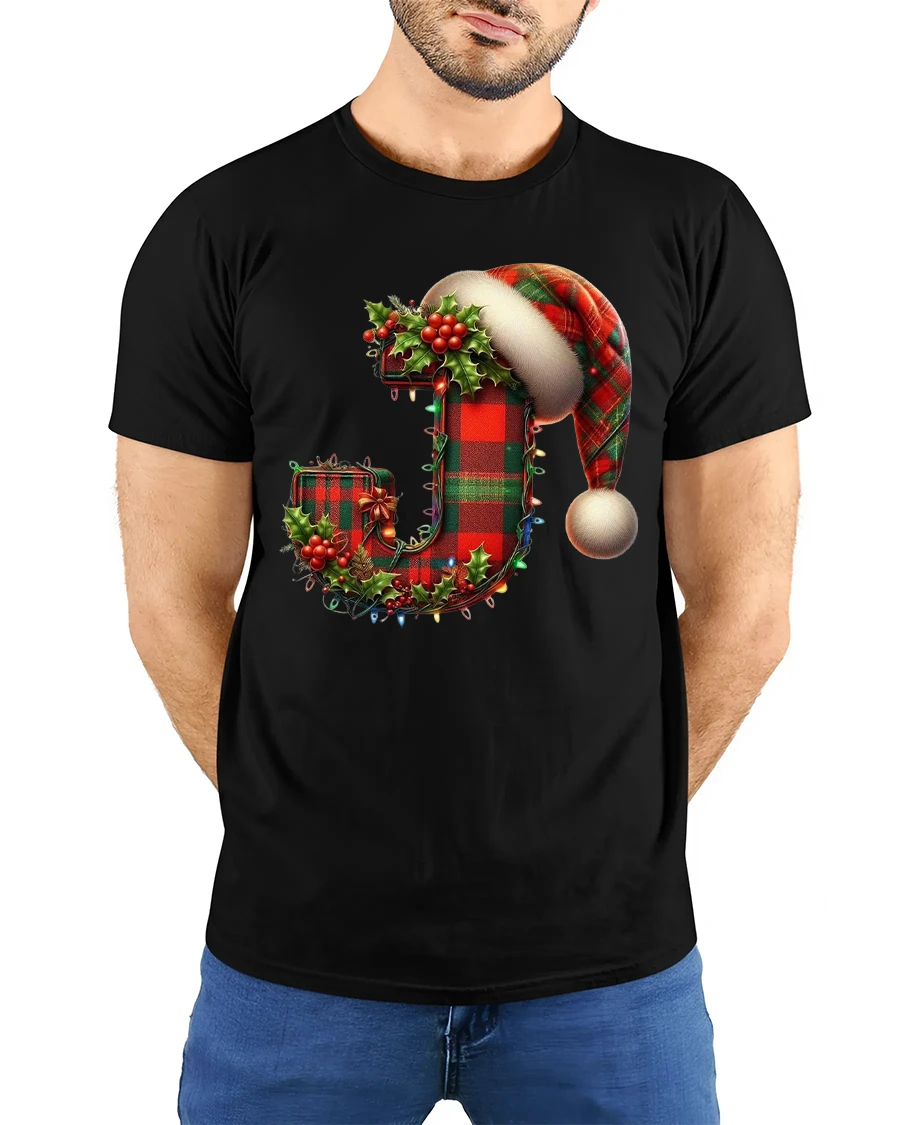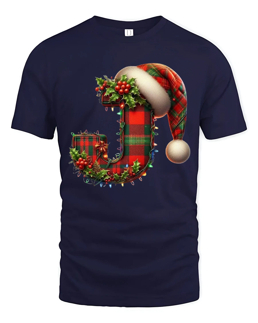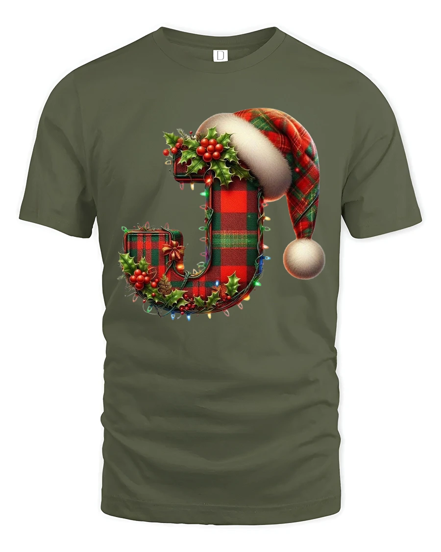 Whether worn to holiday parties family gatherings seasonal photos or cozy winter outings the Festive Letter J Christmas Plaid Santa Hat Holiday T-Shirt delivers comfort style and holiday spirit. It also makes a thoughtful and festive gift choice for anyone who enjoys personalized Christmas fashion and classic seasonal decorations.