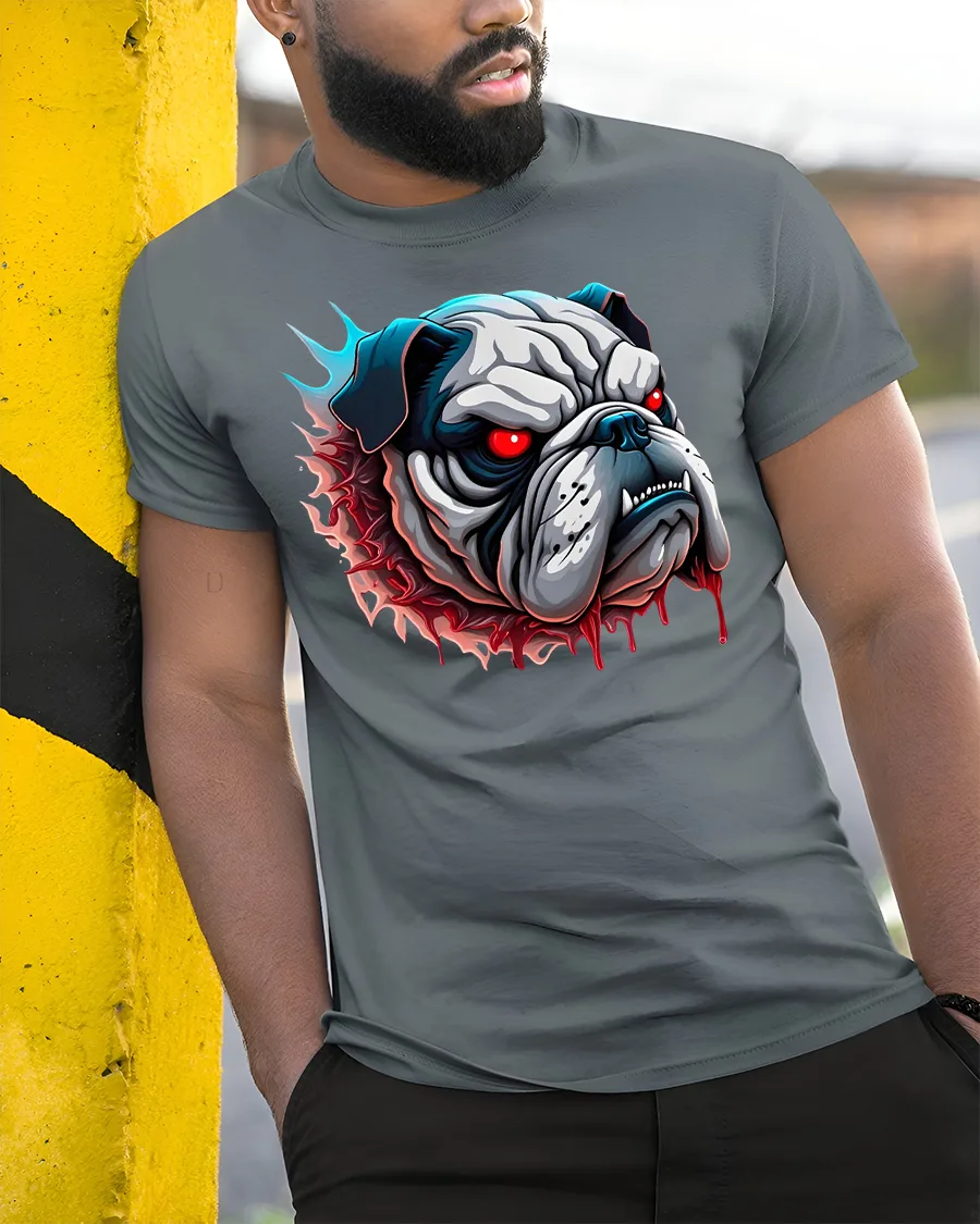 Unleash your wild side with the Fierce Bulldog Red Eyes Graphic T-Shirt for Men. This bold design features a menacing bulldog with glowing red eyes and a dripping, fiery edge that screams power and intensity. Made from high-quality cotton, this tee offers a perfect balance of comfort and durability for daily wear.