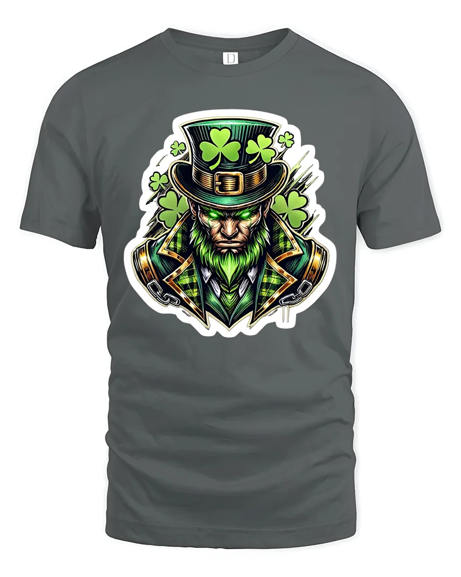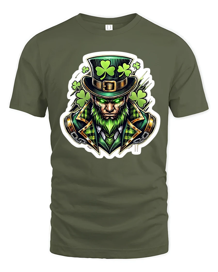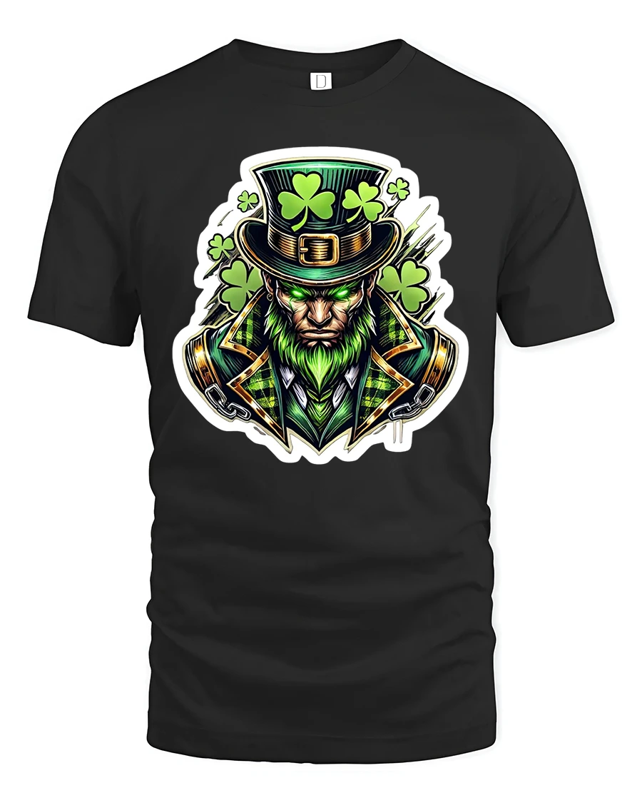 This Fierce Leprechaun Shamrock Warrior St Patrick Graphic T-Shirt brings bold Irish spirit to life with a powerful and visually striking design. Featuring a fierce leprechaun dressed in rich Celtic-inspired clothing, glowing green accents and a hat covered in shamrocks, this artwork captures strength, mystery and traditional Irish symbolism in a modern style. The intense expression and vibrant details give the design a dynamic and commanding presence.