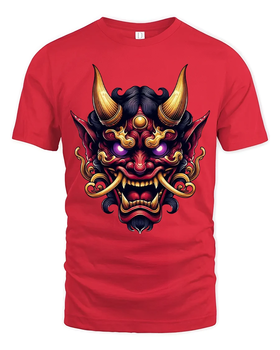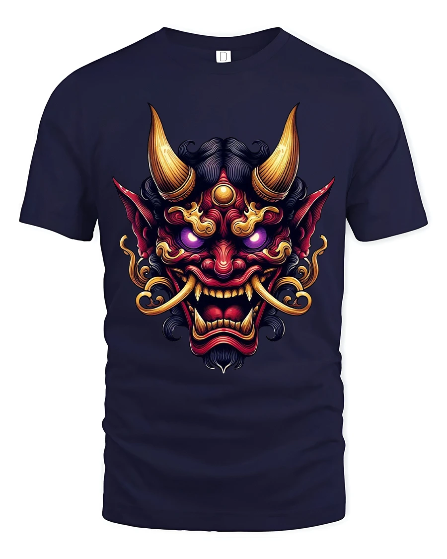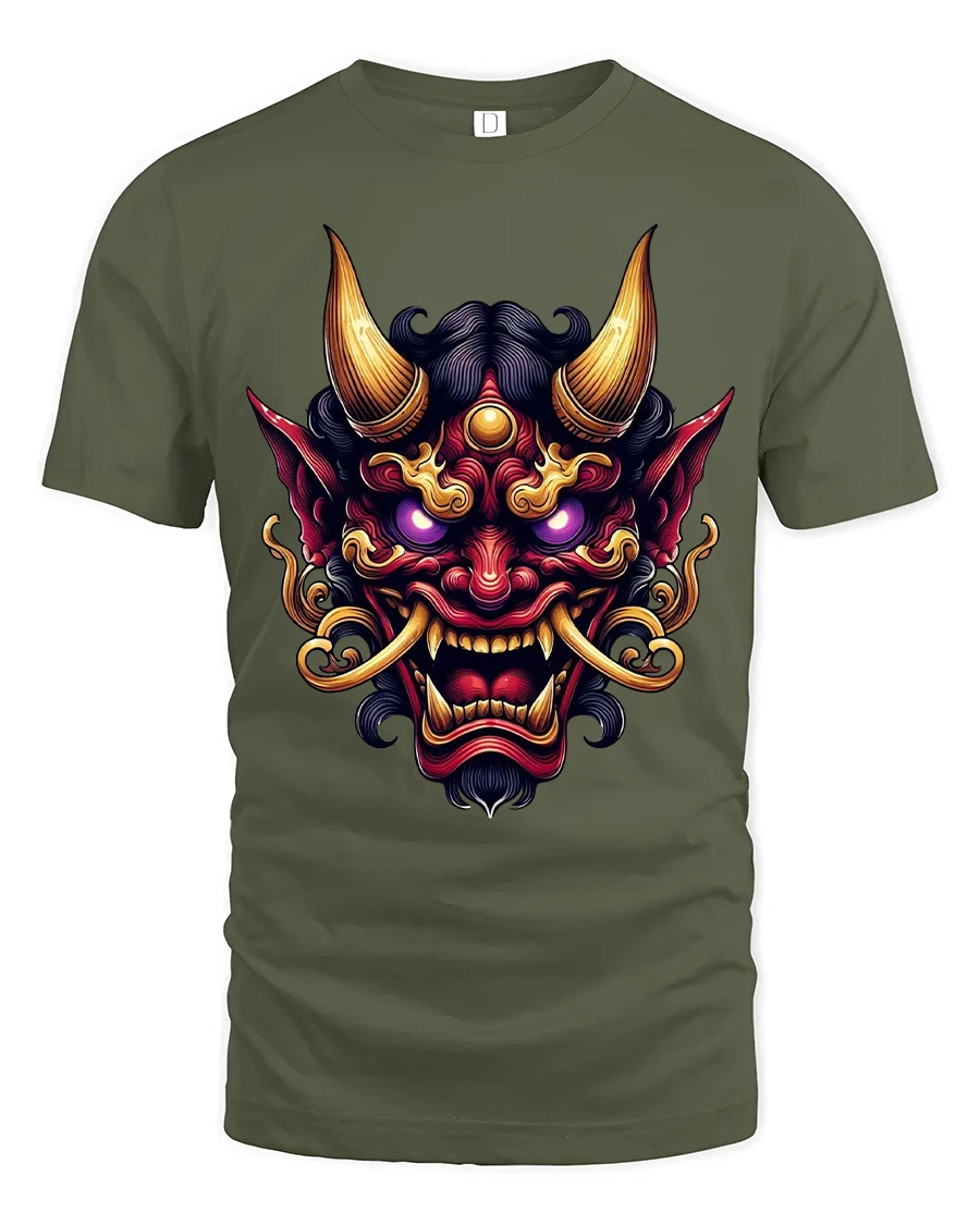 Fierce Oni Demon Mask Art Tshirt delivers a powerful visual inspired by legendary Japanese folklore.