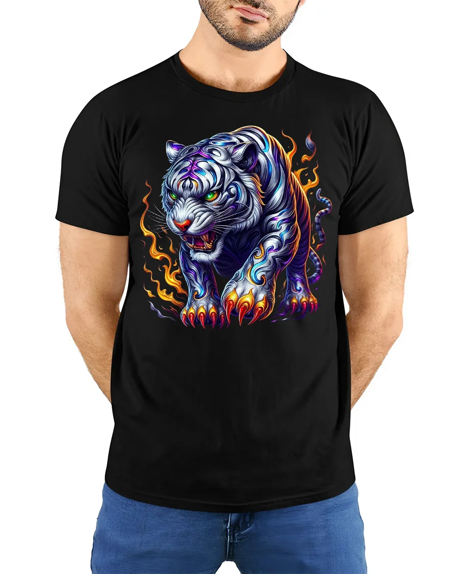 This fierce white tiger with flames graphic t-shirt is crafted with soft, breathable fabric that ensures comfort and long-lasting wear. The premium print technology keeps the vivid details and vibrant colors sharp even after multiple washes, making it a reliable addition to your wardrobe. Whether you’re heading to a festival, casual outing, or just want to express your wild side, this tee is the perfect choice.