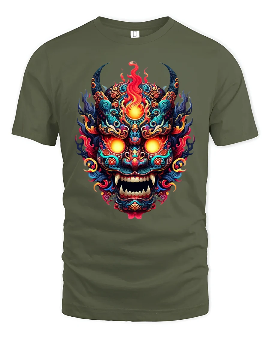 SKU: IMPD2411a4-1 Category: Abstract & Artistic Tags: colorful tribal shirt, demon mask tshirt, fierce mask tee, fiery face tshirt, fire demon graphic, glowing eyes t-shirt, inferno demon art, japanese oni tee, mythic demon artwork, oni mask tee, spiritual mask shirt, tribal demon shirt, tribal warrior graphic, vibrant demon design, warrior mask graphic