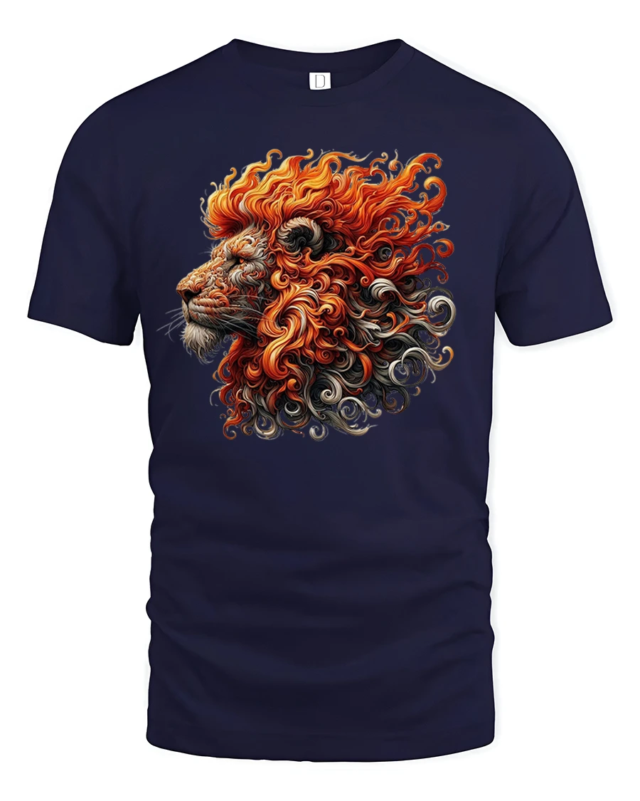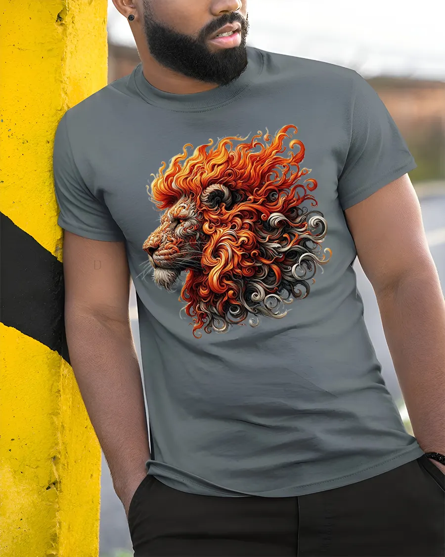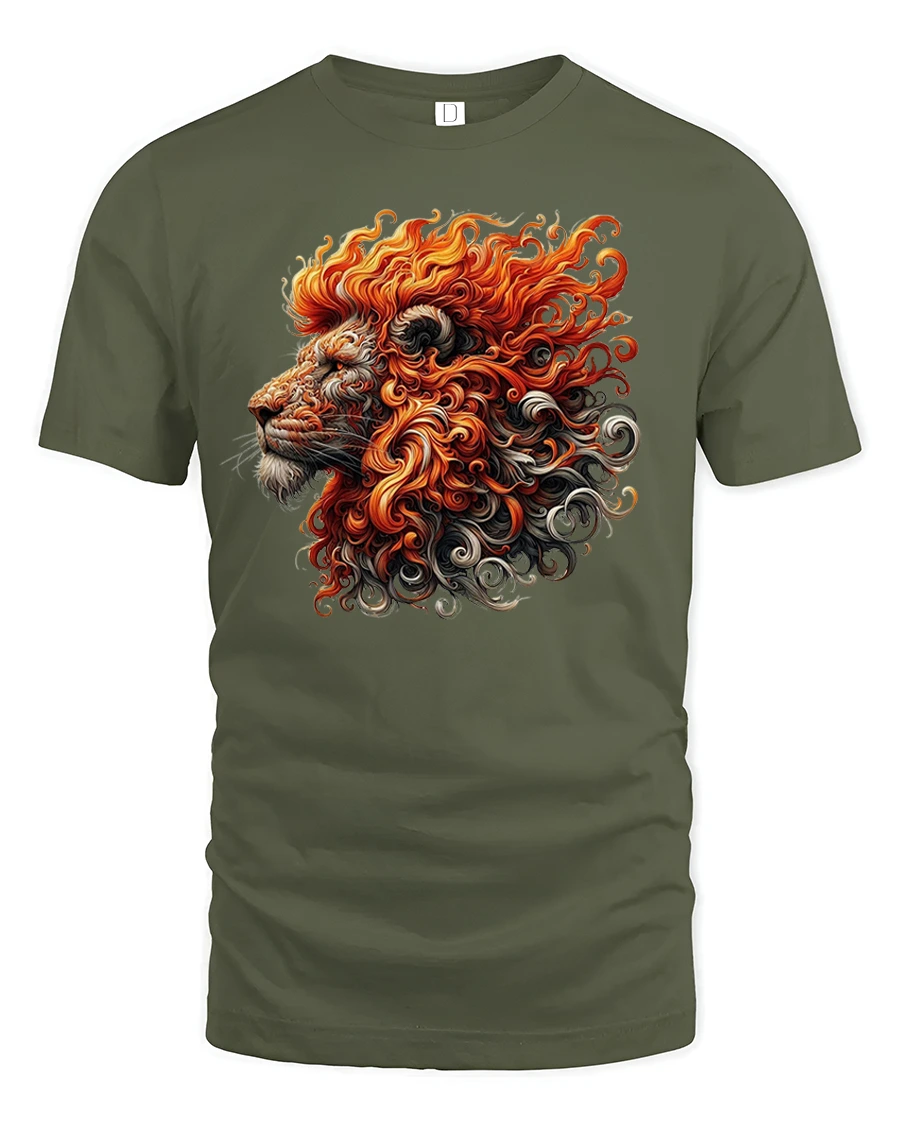 Fiery Lion Head Artistic Flames Graphic T-shirt is a powerful statement piece for those who love bold and eye-catching designs. Featuring a majestic lion with a fiery swirling mane, this shirt symbolizes strength, courage, and leadership. The intricate artwork blends fantasy elements with a realistic lion design, making it a standout choice for animal lovers and fashion enthusiasts alike.