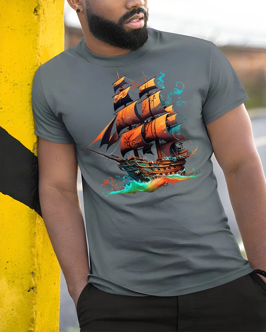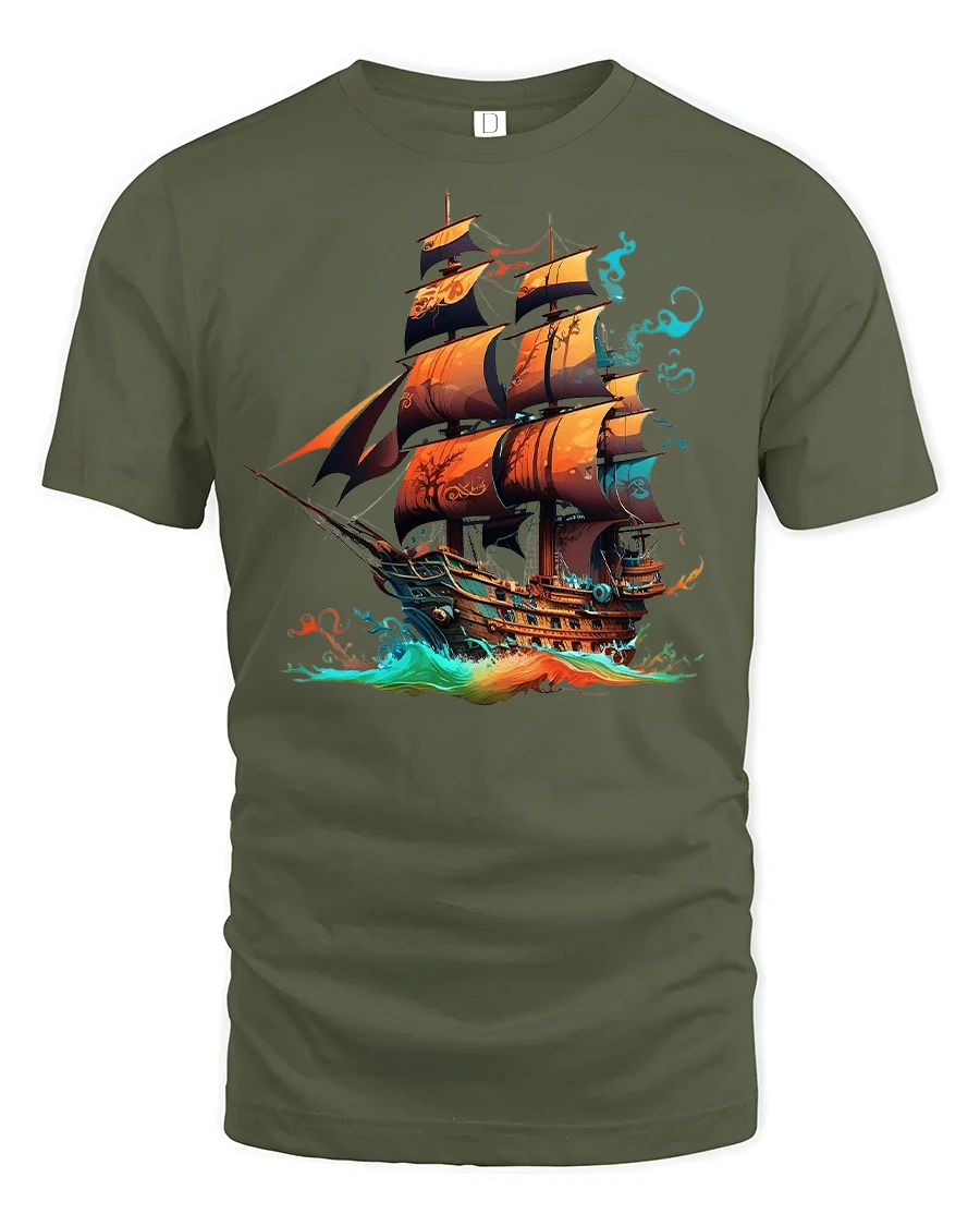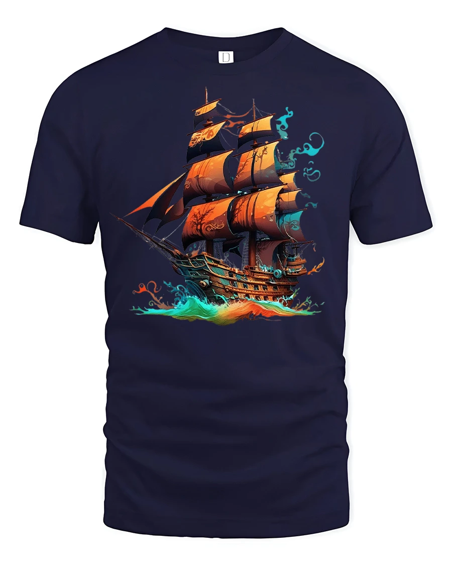 Fiery Pirate Ship Ocean Adventure Fantasy Graphic Tee brings explosive energy and vivid fantasy imagery to life. Featuring a dramatic pirate ship with blazing orange sails cutting through colorful waves, this design captures the spirit of adventure, danger, and freedom on the open sea. The bright hues and swirling motion give the artwork a powerful, dynamic look that stands out from every angle.