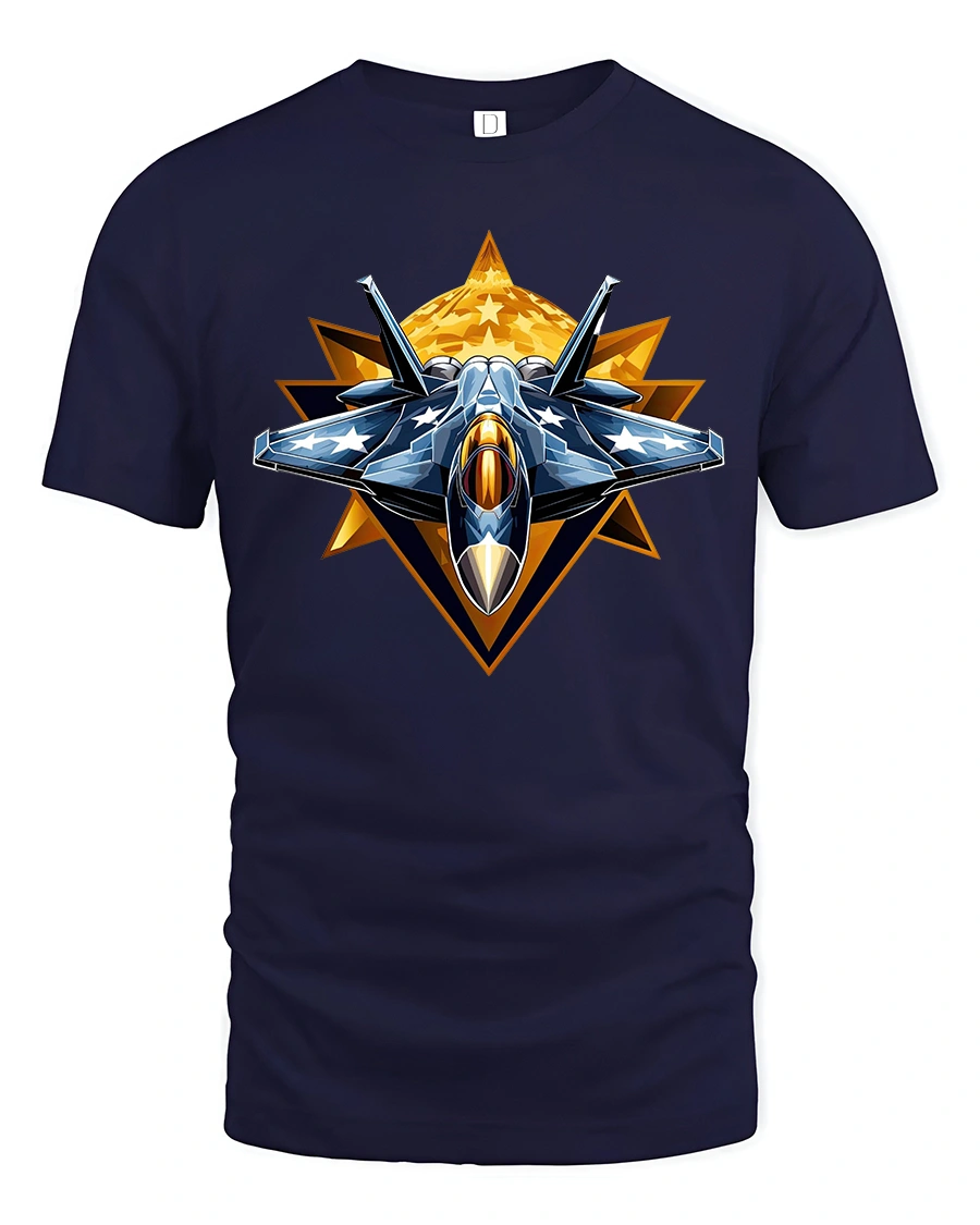 Fighter Jet Star Emblem T-Shirt for Aviation Lovers is a bold and dynamic piece perfect for anyone who loves military aircraft, jet fighters, and high-speed aviation. The eye-catching design features a detailed front-view fighter jet framed by a powerful star emblem and golden geometric accents, giving the tee a strong, patriotic, and action-packed look. It’s an ideal shirt for aviation fans who enjoy sharp, modern artwork.