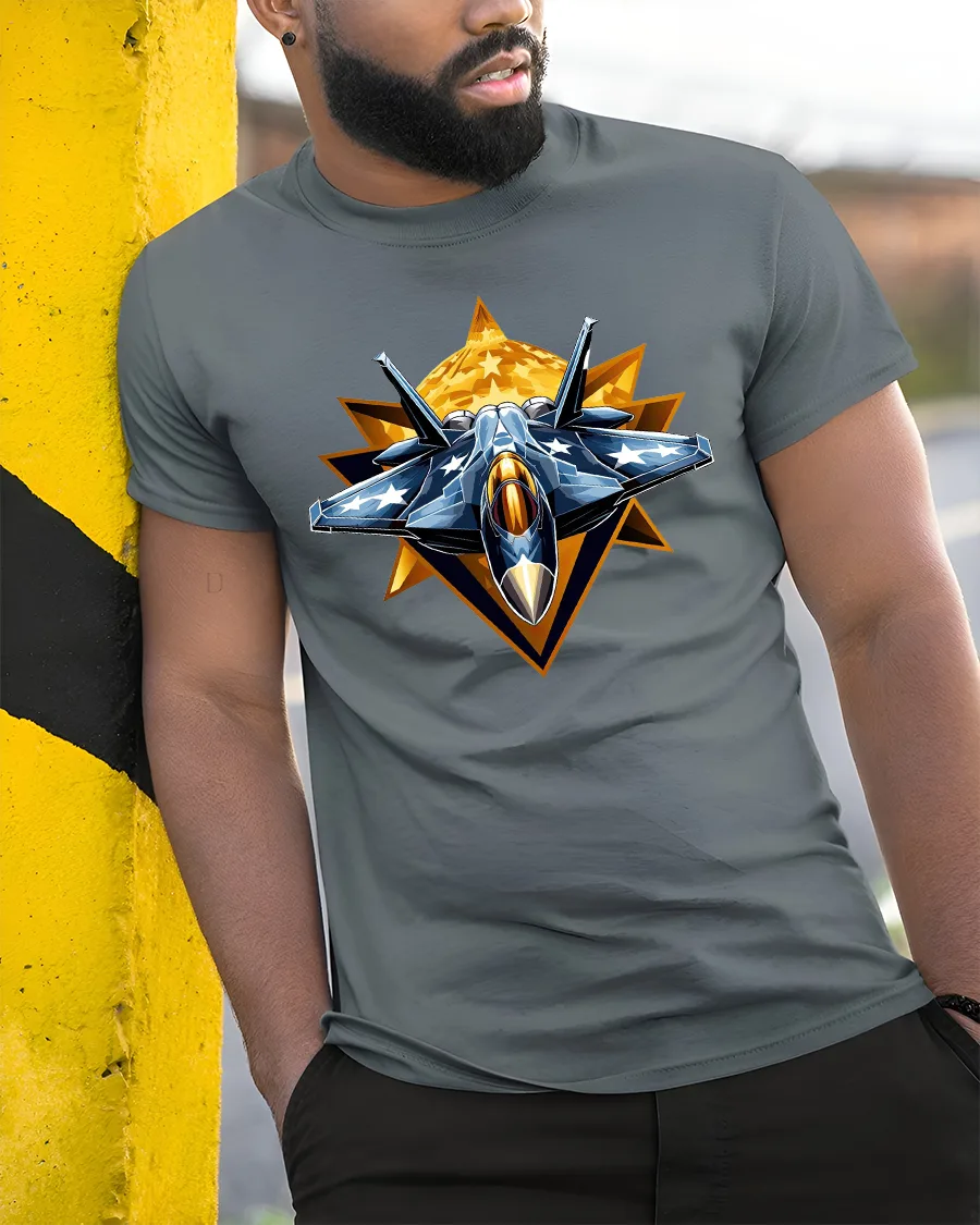 Made from soft, comfortable fabric, this tshirt is great for airshows, aviation events, hangar visits, veteran gatherings, or casual everyday wear. The high-quality print preserves the crisp jet details and vivid star elements, ensuring long-lasting clarity even after many washes. It also makes an excellent gift for pilots, military personnel, veterans, aircraft hobbyists, or anyone passionate about flight.