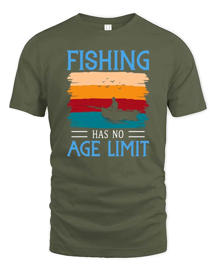 Fishing Has No Age Limit Vintage Sunset Graphic T Shirt features a relaxing outdoor inspired design that reflects the timeless enjoyment of fishing.