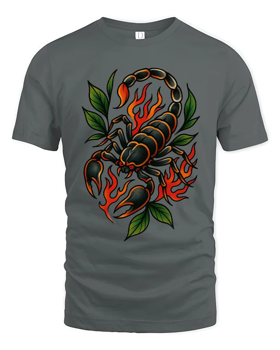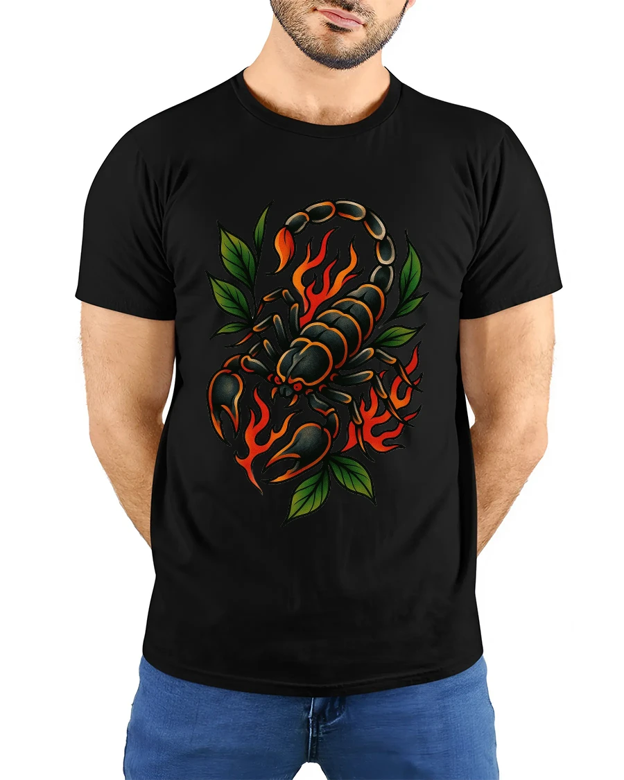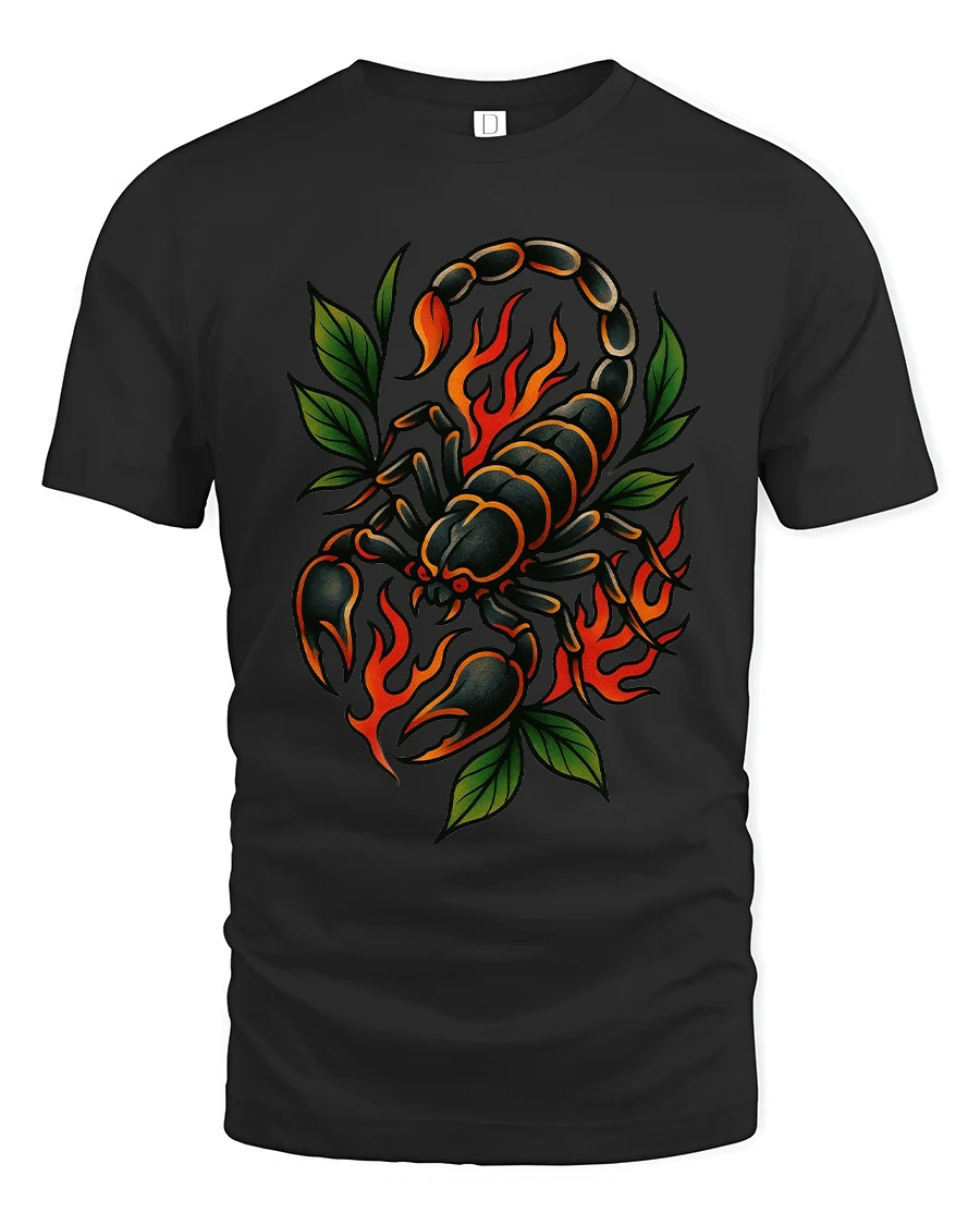 Flaming Scorpion Graphic Tee Bold Fire Tattoo Style Art is perfect for those who appreciate strong visuals and expressive fashion.