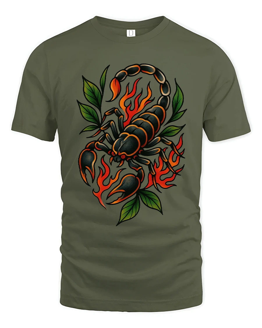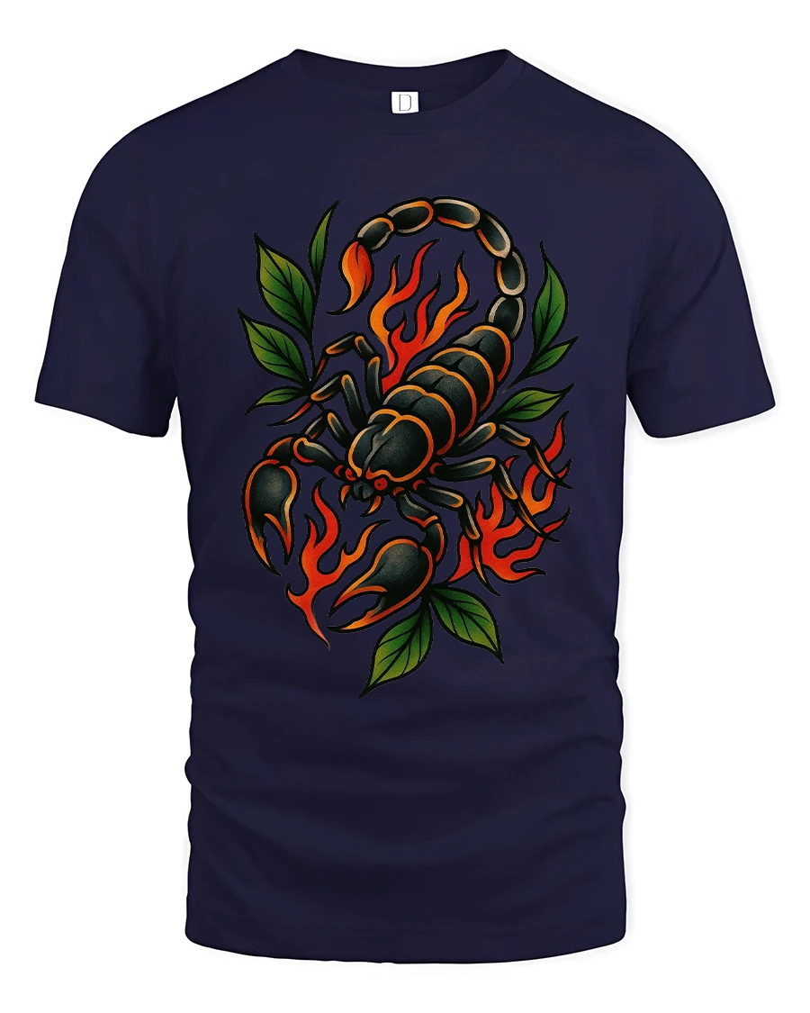 Flaming Scorpion Graphic Tee Bold Fire Tattoo Style Art delivers a powerful visual inspired by classic tattoo culture and intense symbolism.