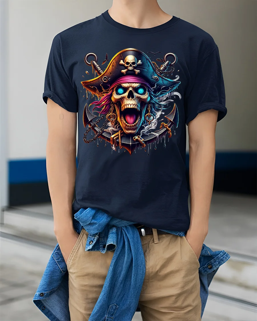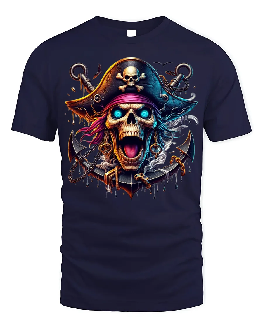 The Flaming Skull Pirate T-shirt with Neon Artwork is ideal for fans of nautical lore, fantasy horror, or anyone who likes their fashion fierce and fearless.