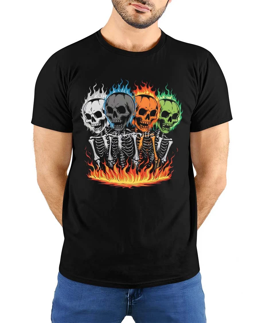 Flaming Skull Skeleton T-Shirt Dark Gothic Fire Graphic