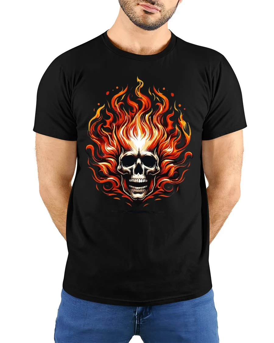 Wearing the Flaming Skull Tee with Fiery Bold Art and Intense Graphic Style adds a burst of attitude and confidence to any wardrobe. The sharp details and vibrant flames make this graphic incredibly striking, turning a simple outfit into a statement piece. It’s ideal for casual outings, concerts, gatherings, or anytime you want a tee that reflects fierce personality and style.