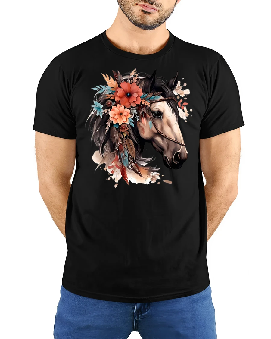 Floral Horse Portrait Graphic Tee Boho Western Art T Shirt expresses freedom strength and artistic individuality.