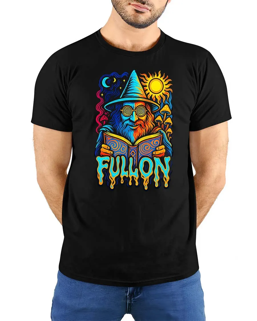 Full On Wizard Psychedelic Graphic t-shirt Trippy Art Tee adds personality and creativity to any graphic tee collection.
