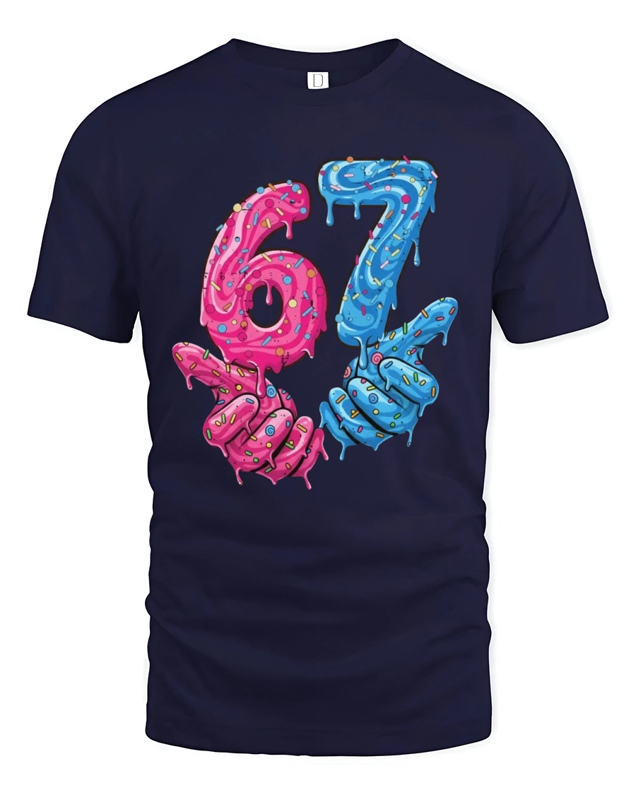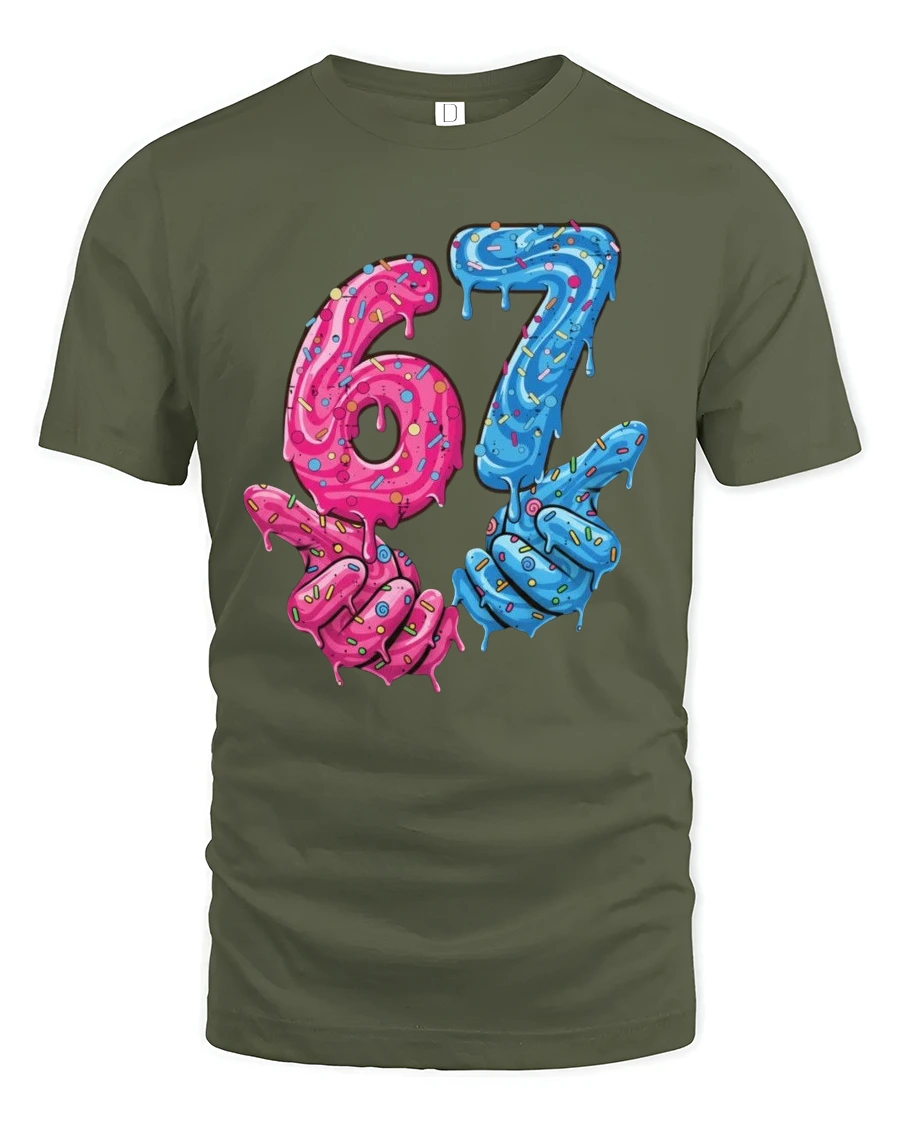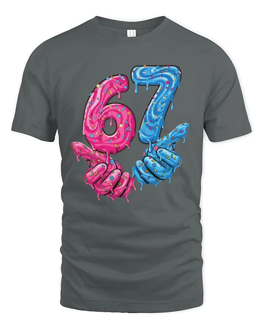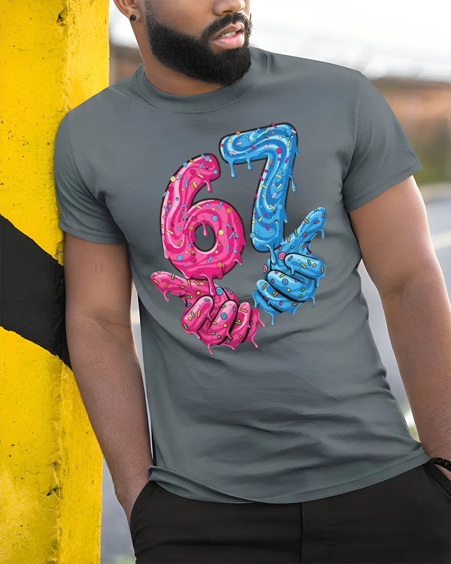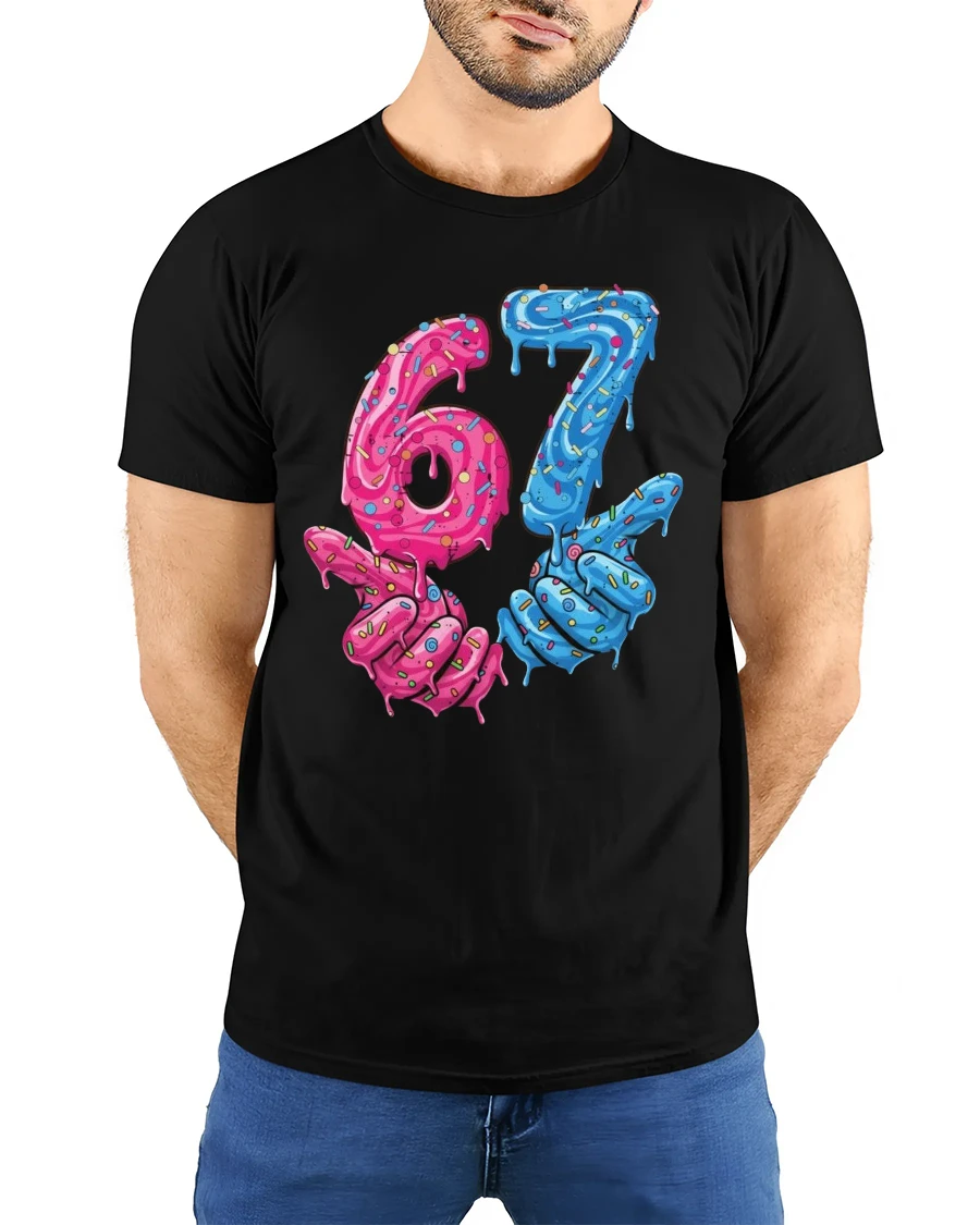 The Funny 67 Donut Style T Shirt With Dripping Candy Art Design is ideal for anyone who enjoys playful fashion and creative graphics.
