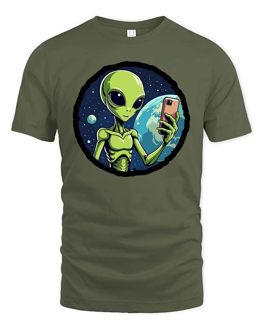 Funny Alien Selfie T-Shirt UFO Space Humor Graphic Tee
