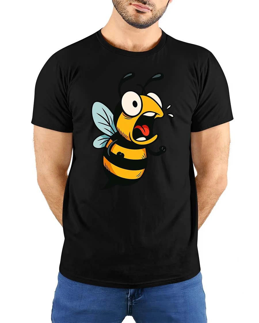 Featuring a cartoon bee with an exaggerated angry expression, this t-shirt adds a playful and quirky twist that instantly grabs attention.