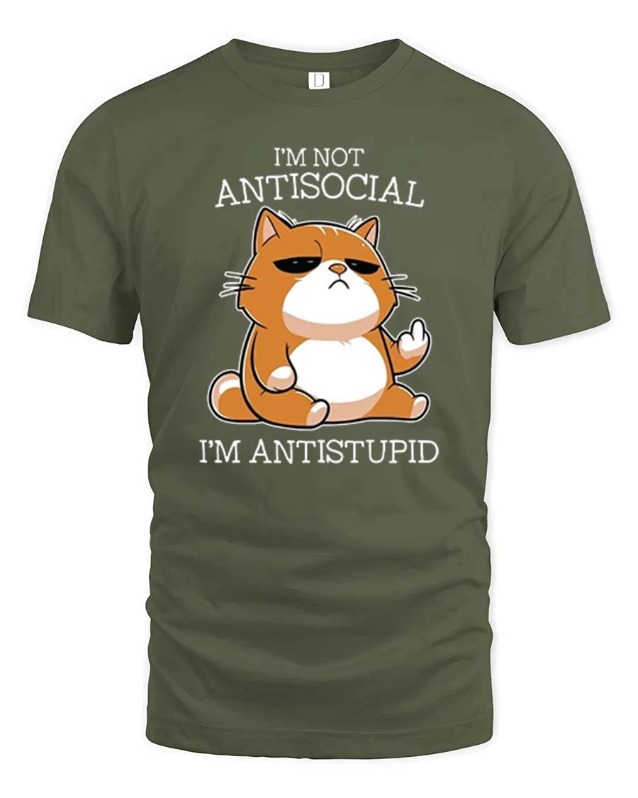 Funny Antisocial Cat T-Shirt Sarcastic Humor Graphic - military green t-shirt on white background