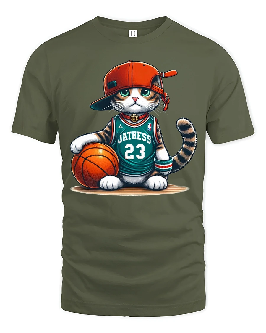 This basketball cat tshirt features a stylish cartoon cat holding a basketball with a confident street look that instantly grabs attention.