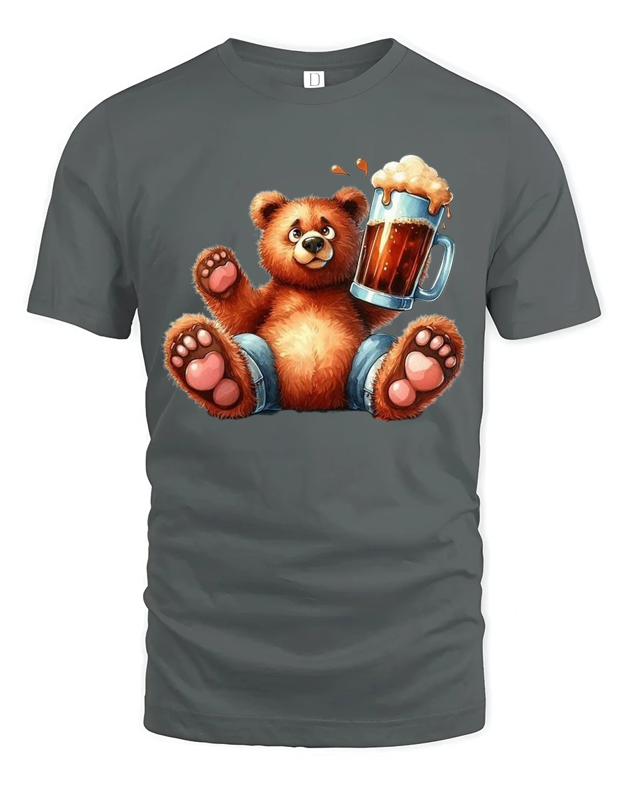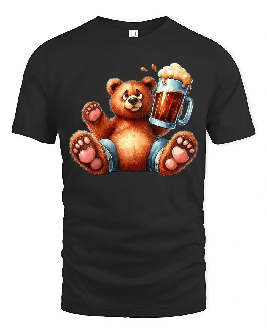 Tags: bear art t shirt, bear beer tshirt, bear illustration tshirt, beer graphic t shirt, beer lover graphic tee, cartoon bear tee, cheerful animal tee, cute animal t shirt, cute bear shirt, drinking bear shirt, fun cartoon animal shirt, funny bear t shirt, humorous animal tshirt, novelty bear t shirt, playful bear tee