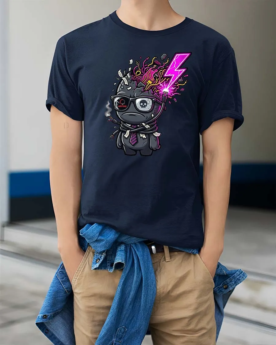 Funny Brain Explosion Cartoon Dark Humor Graphic T-Shirt Tee features an imaginative character design that blends humor creativity and edgy artistic style.