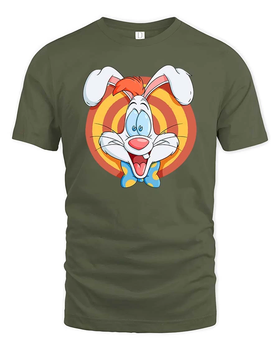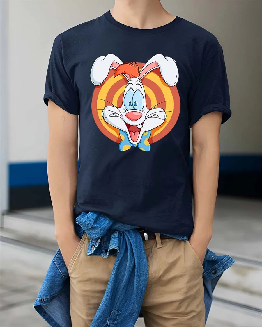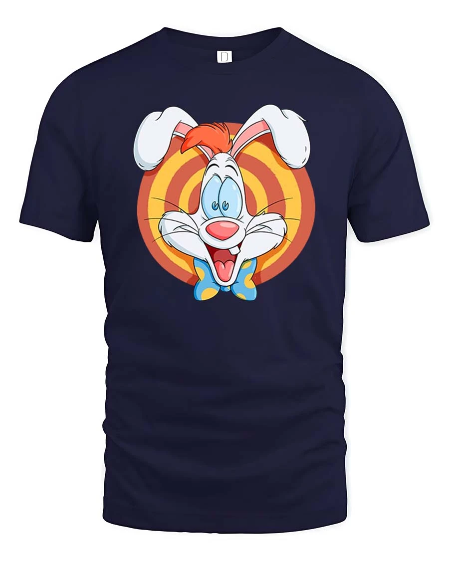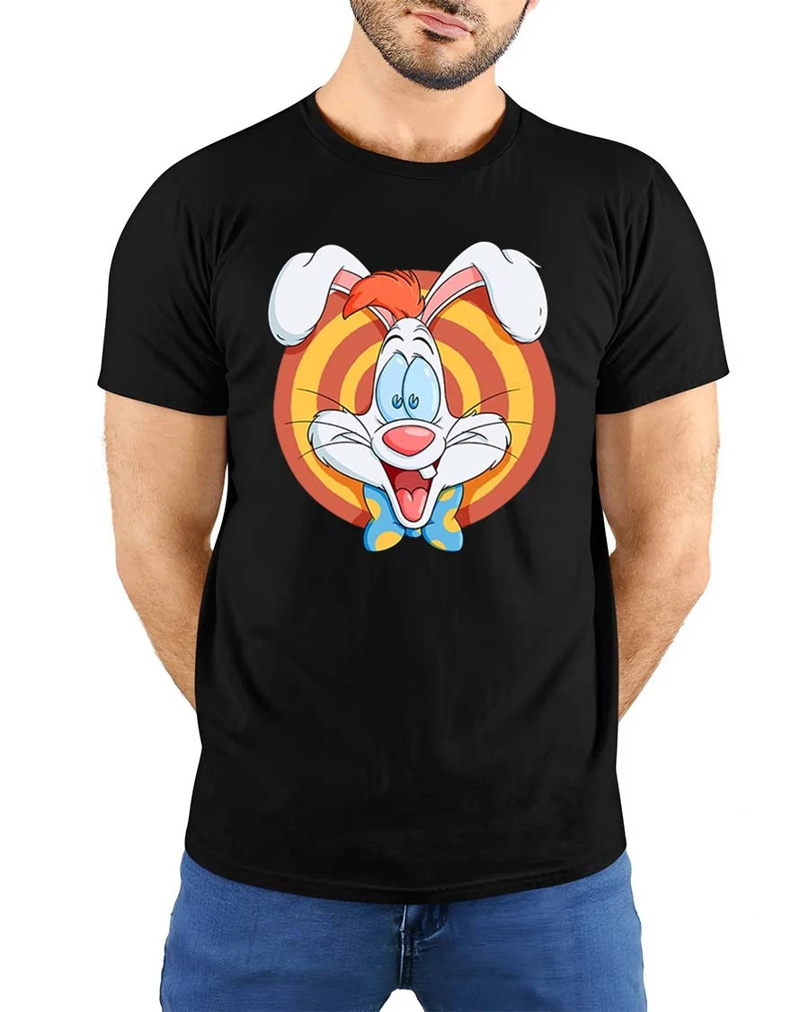 Funny Cartoon Bunny Retro Style Happy Character Graphic T-shirt features a cheerful design inspired by classic animation style.