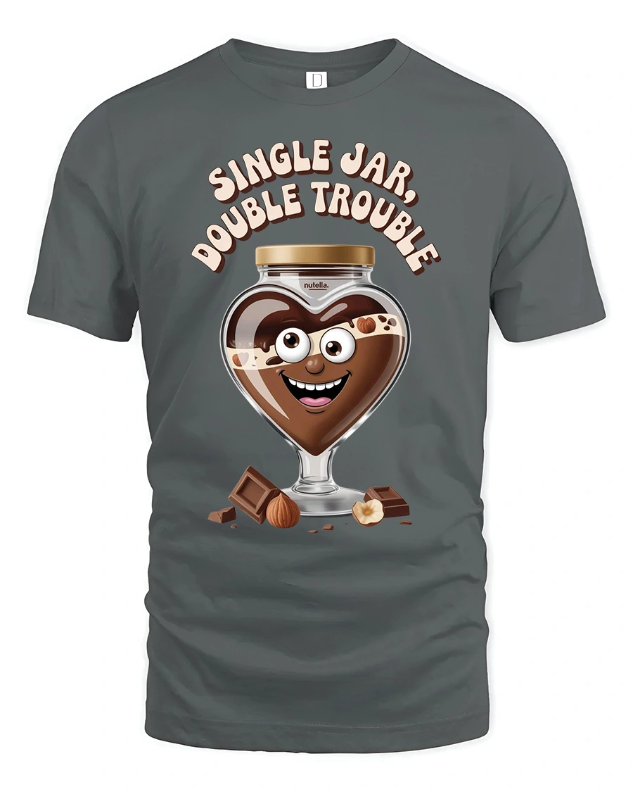 The Funny Chocolate Jar Double Trouble Cute Food Cartoon T-Shirt brings sweet humor and playful charm to your wardrobe. Featuring an adorable smiling chocolate jar character surrounded by tasty details the design pairs perfectly with the hilarious phrase “Single Jar, Double Trouble.” With bright expressive artwork this tee is a fun way to show your love of snacks, sweets, and lighthearted food humor.