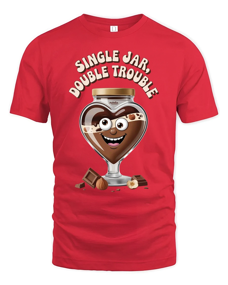 Funny Chocolate Jar Double Trouble Cute Food Cartoon T-Shirt - red t-shirt on white background