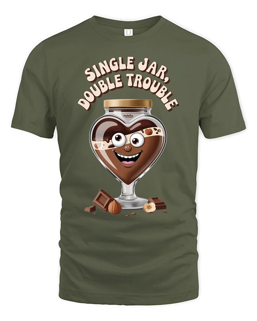 Funny Chocolate Jar Double Trouble Cute Food Cartoon T-Shirt - military green t-shirt on white background