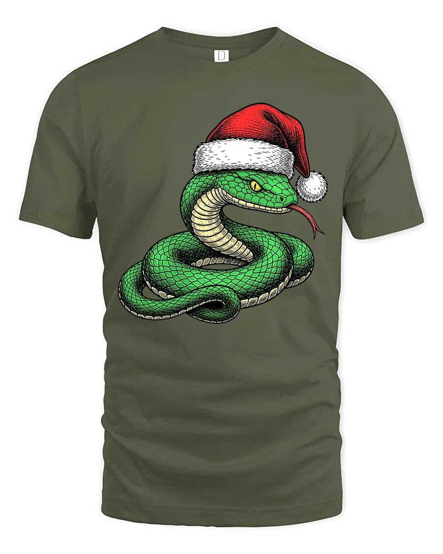 This festive snake graphic tee is perfect for anyone who enjoys unique animal designs and holiday humor.