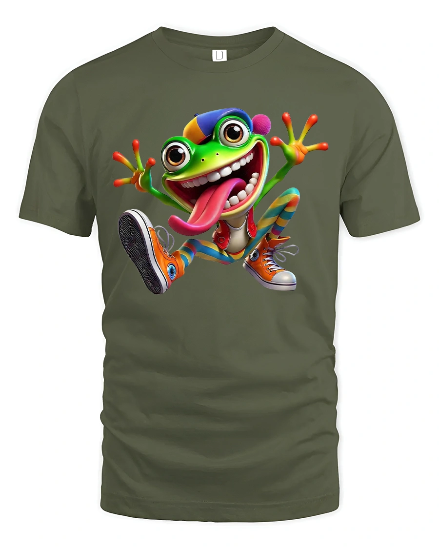 Funny Crazy Frog Cartoon Graphic Tee Colorful Playful Art T Shirt is perfect for expressing a lively personality and positive energy.