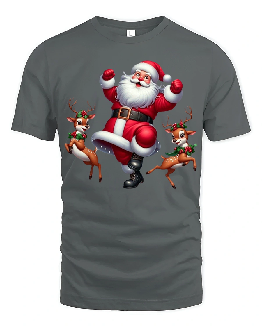 Funny Dancing Santa Claus Cartoon Tee With Playful Reindeer Vibes captures the joy and energy of the holiday season in a fun and lighthearted design.