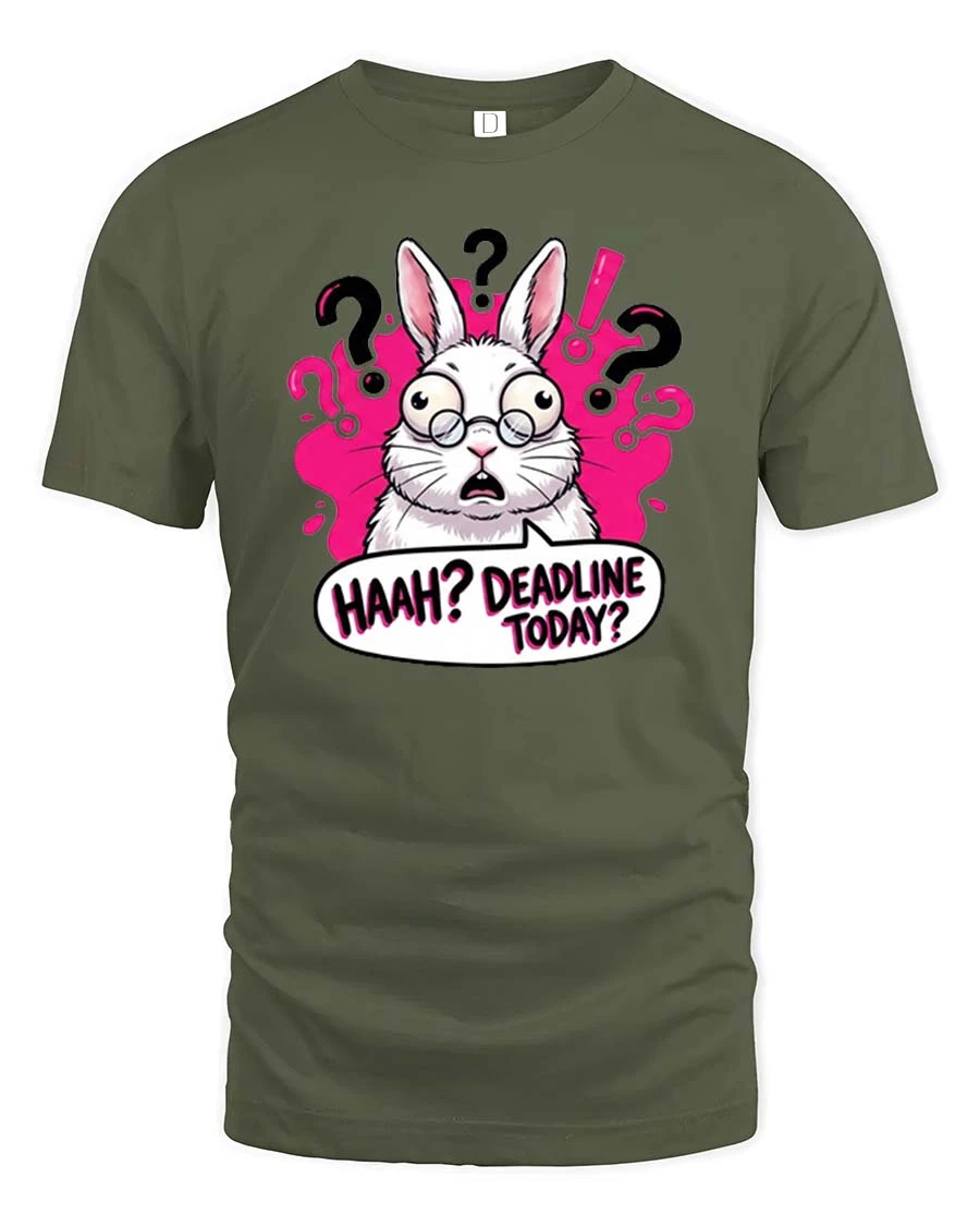 Funny Deadline Today Confused Bunny Humor Work Stress Tshirt - military green t-shirt on white background