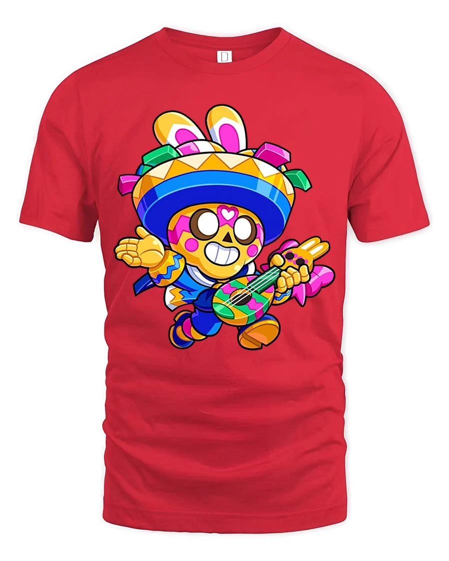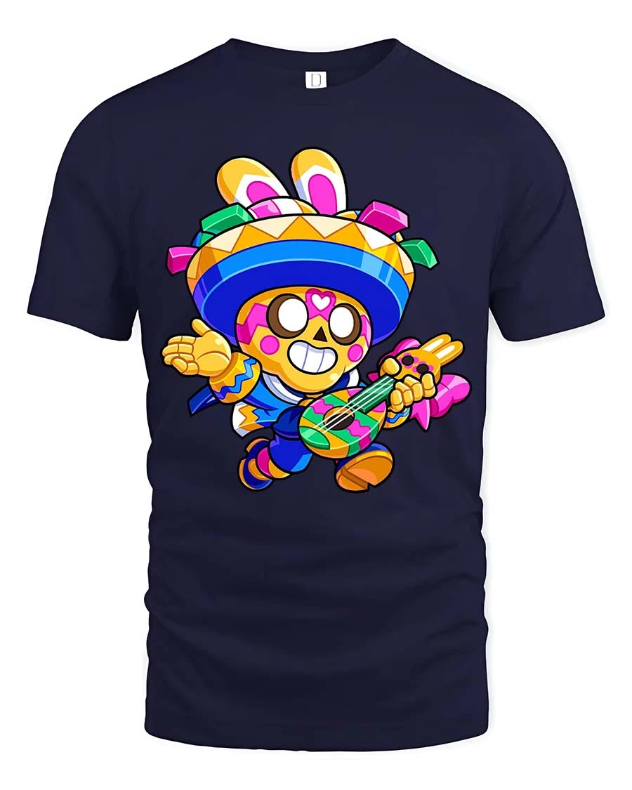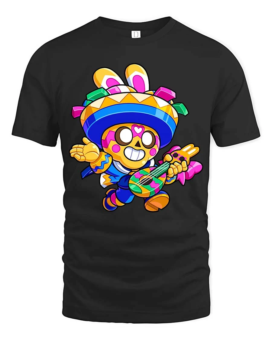 The fiesta skeleton guitar tee also makes a great gift for music lovers and fans of festive cultural designs.