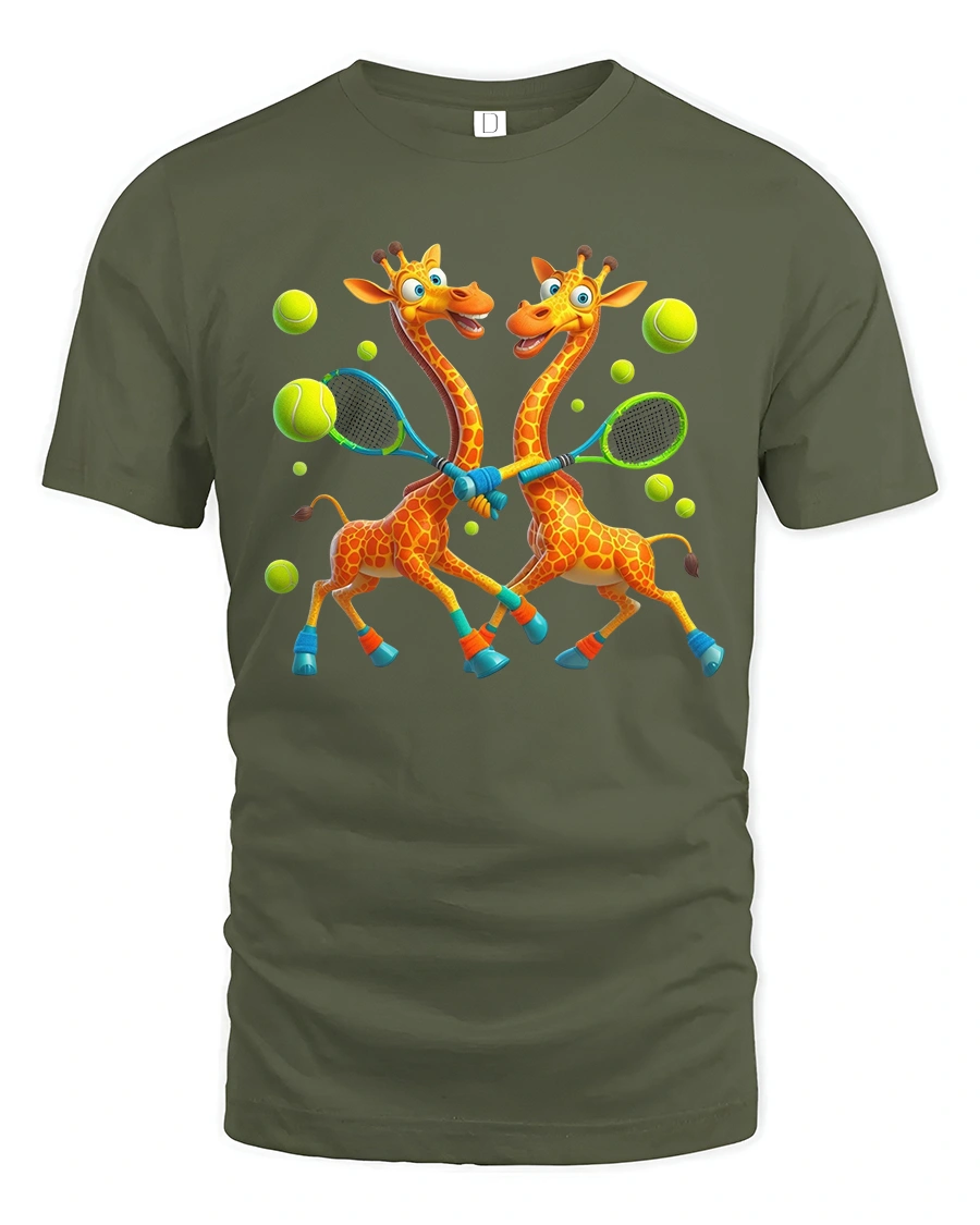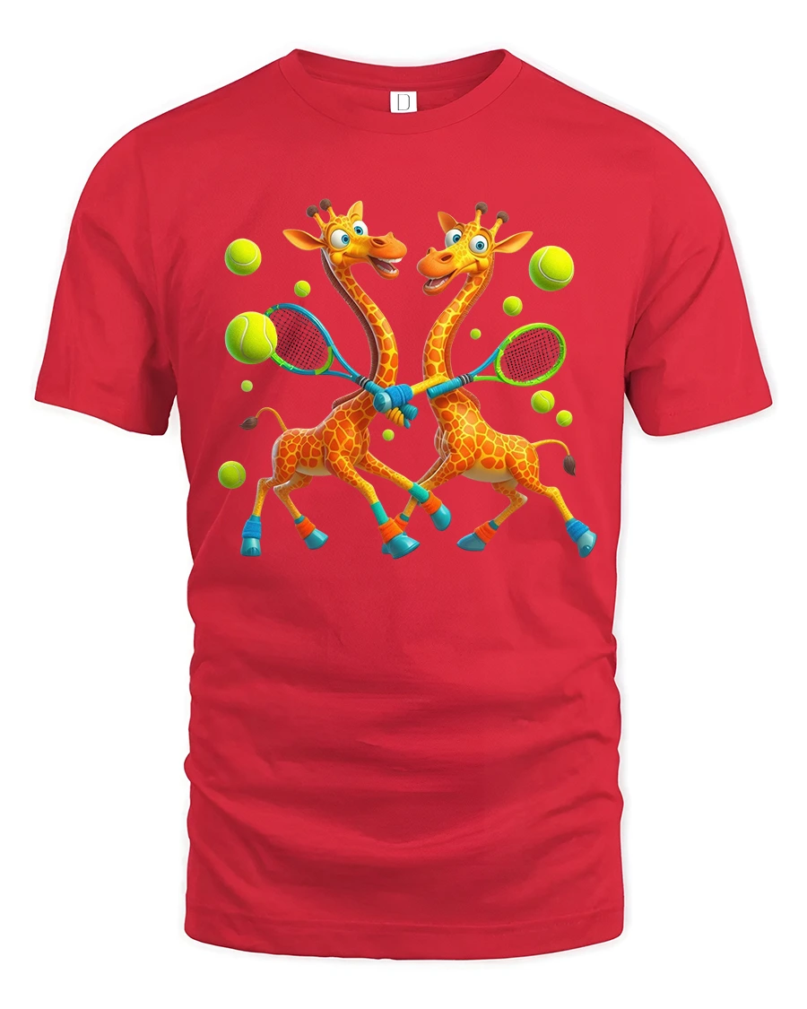 Funny Giraffes Playing Tennis Art T Shirt brings humor and sporty fun together in one lively design.