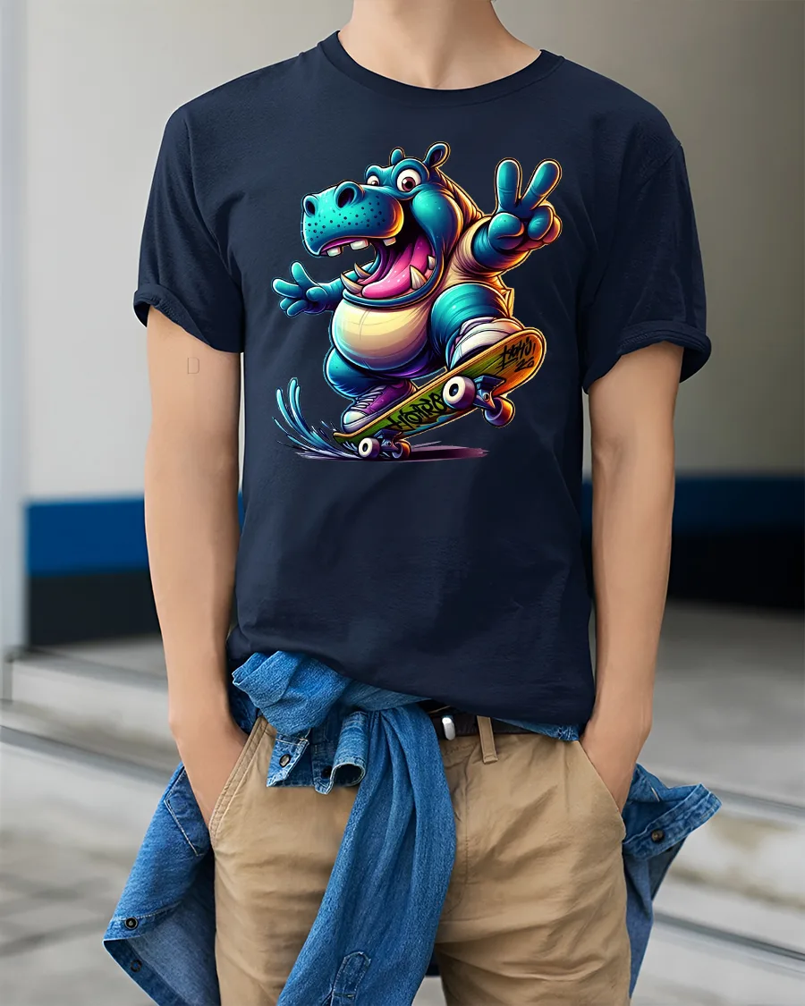 Funny Hippo Skateboard Tee for Cool Street Style brings energy, color, and pure fun to your everyday look.