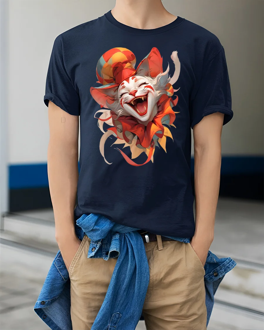 SKU: IMPD1609a3-1 Category: Lifestyle Tags: artistic graphic tee, clown cat graphic tee, colorful costume shirt, comic cat tee, cute cat lover shirt, fantasy cat art t-shirt, funny cat tee, funny streetwear tee, halloween cat tee, jester cat tshirt, joker cat shirt, joker themed shirt, laughing cat t-shirt, mischievous cat design, soft cotton funny shirt