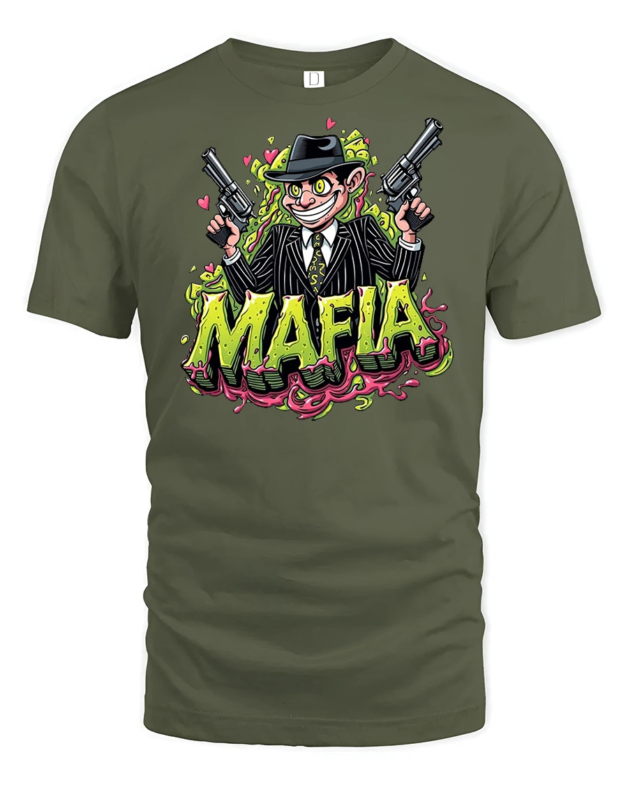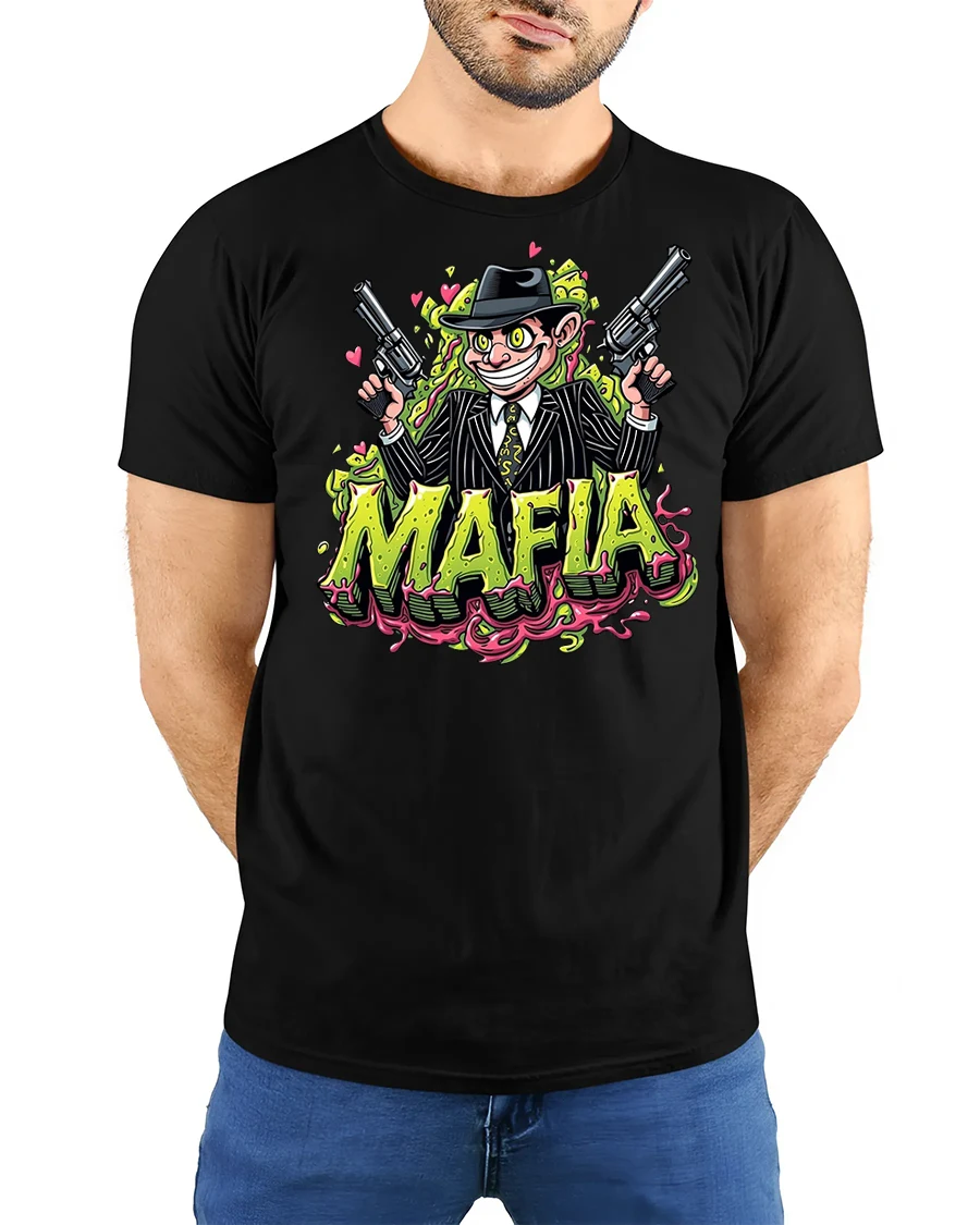 Crafted from premium soft cotton, this mafia graphic t-shirt is comfortable enough for daily wear while keeping your look stylish and unique. The vibrant print is made to last, ensuring the bold colors and intricate details stay sharp even after multiple washes. It’s a great conversation starter and a fun addition to any novelty tee collection.