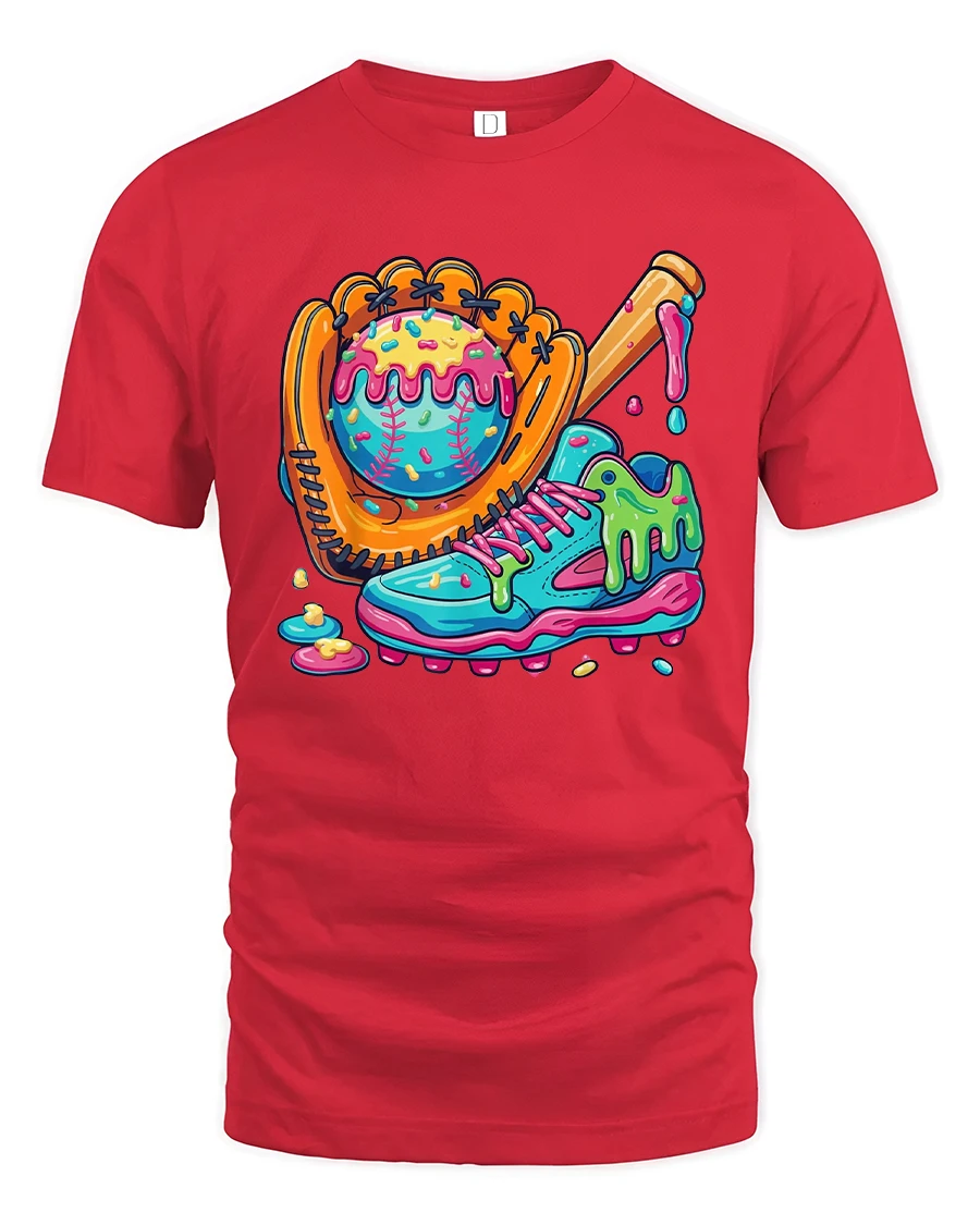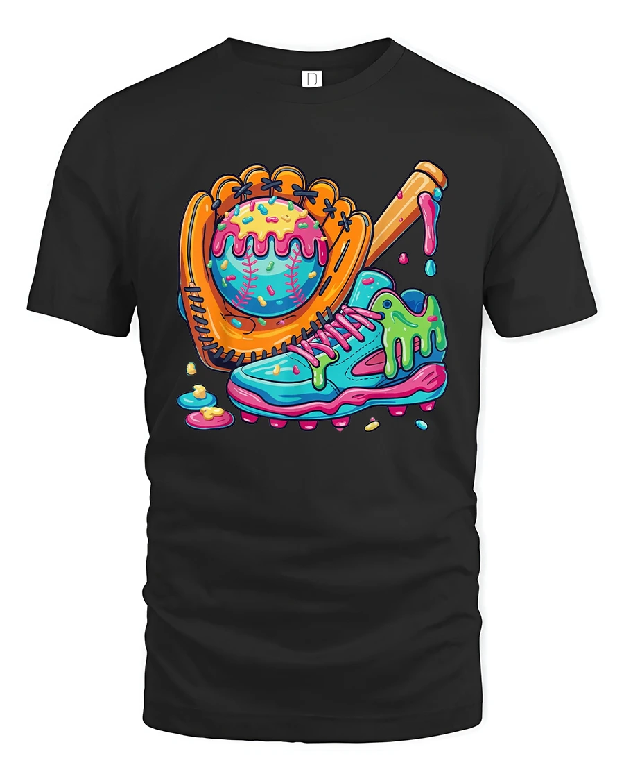 Funny Melting Baseball Gear Tee With Colorful Street Art Vibes brings a bold creative twist to classic sports style.