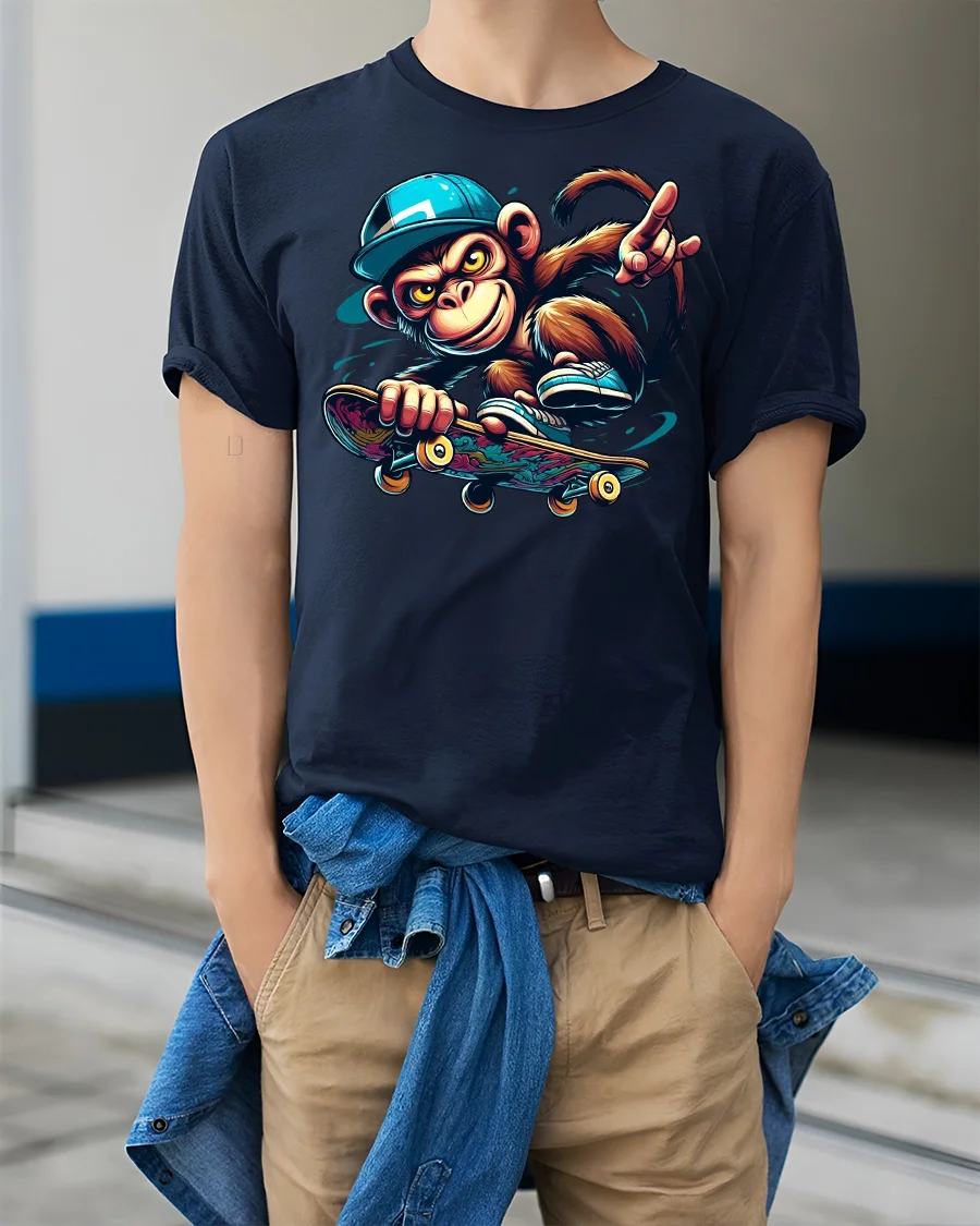 Perfect for teens, young adults, and anyone with a love for skateboarding and edgy fashion, the Funny Monkey Skateboarding T-Shirt makes an awesome gift for birthdays, holidays, or just to treat yourself. Get ready to roll in style with this fun streetwear design.