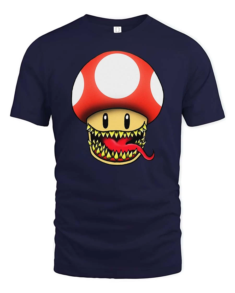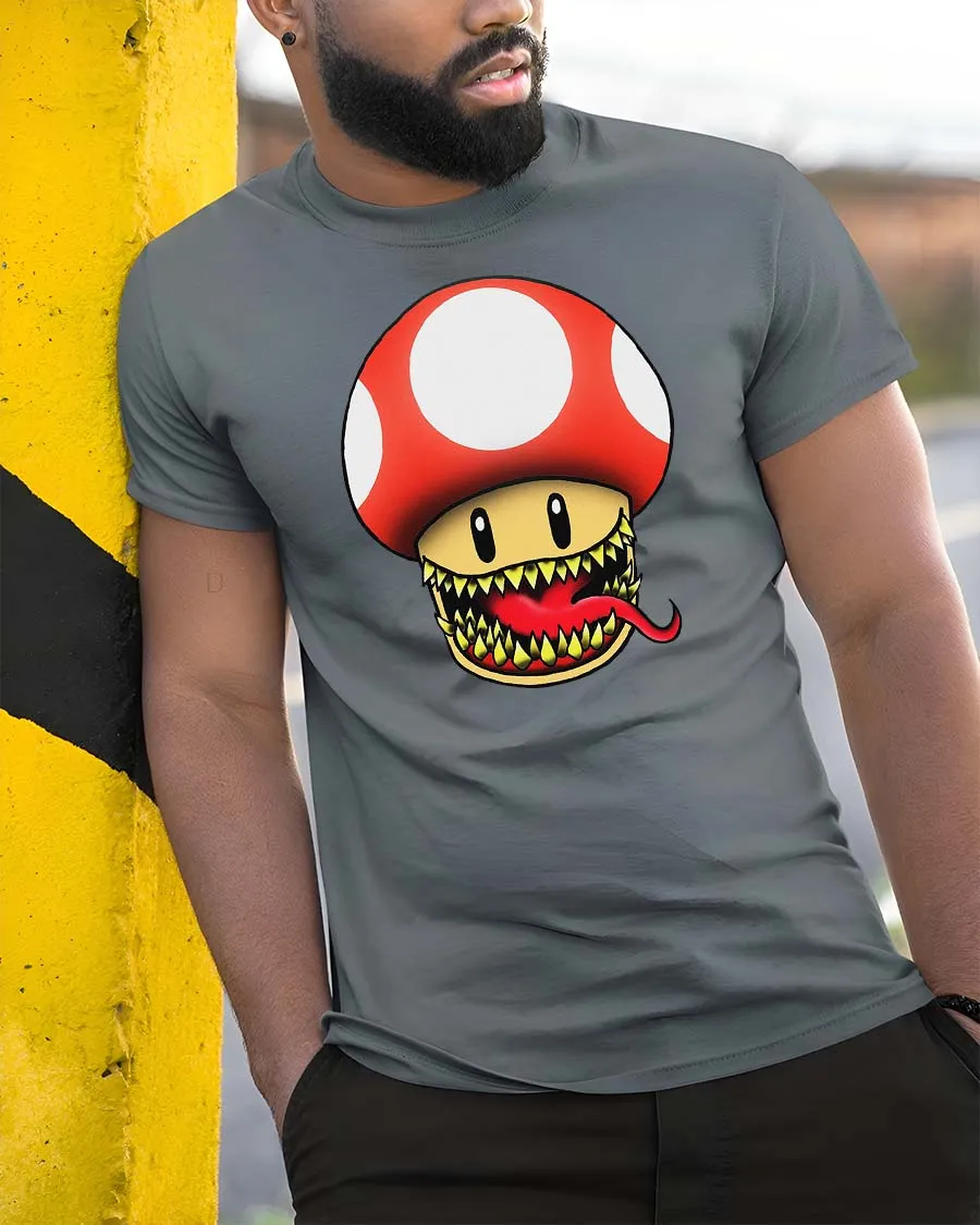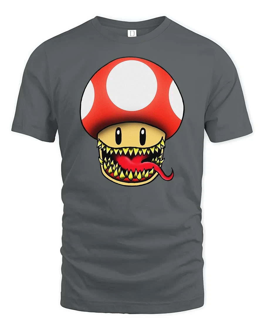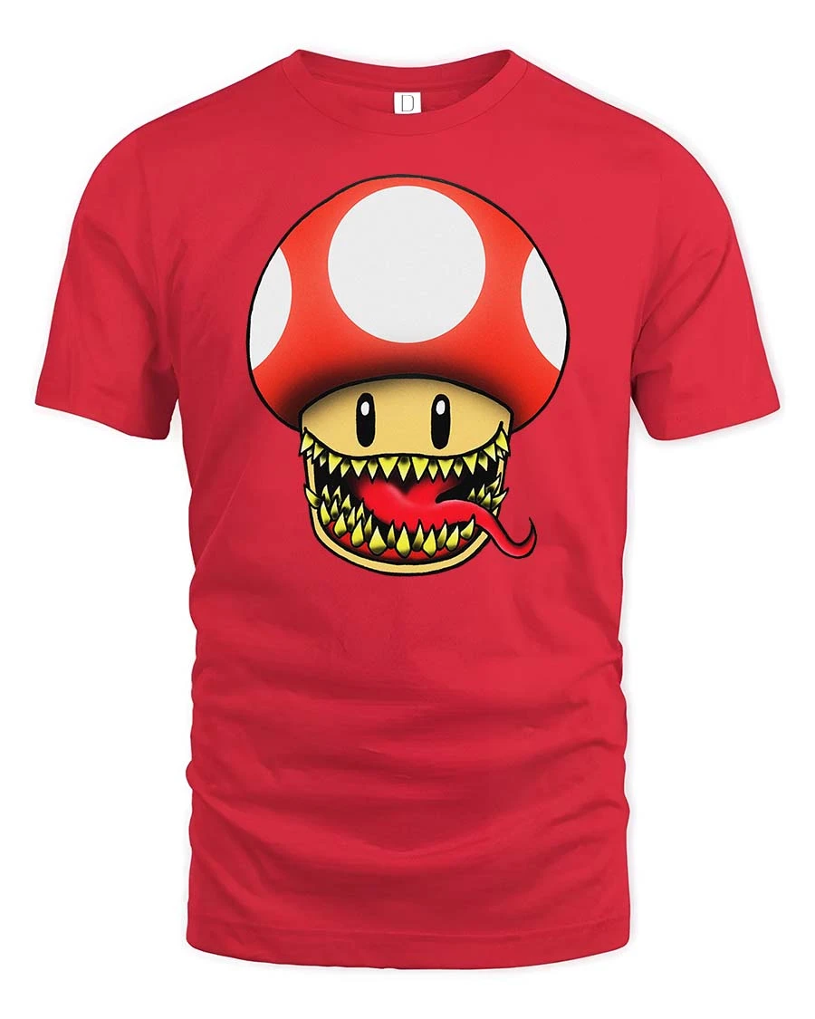 Funny Monster Mushroom Graphic t-shirt Gamer Style Tee combines playful gaming inspiration with bold cartoon creativity.