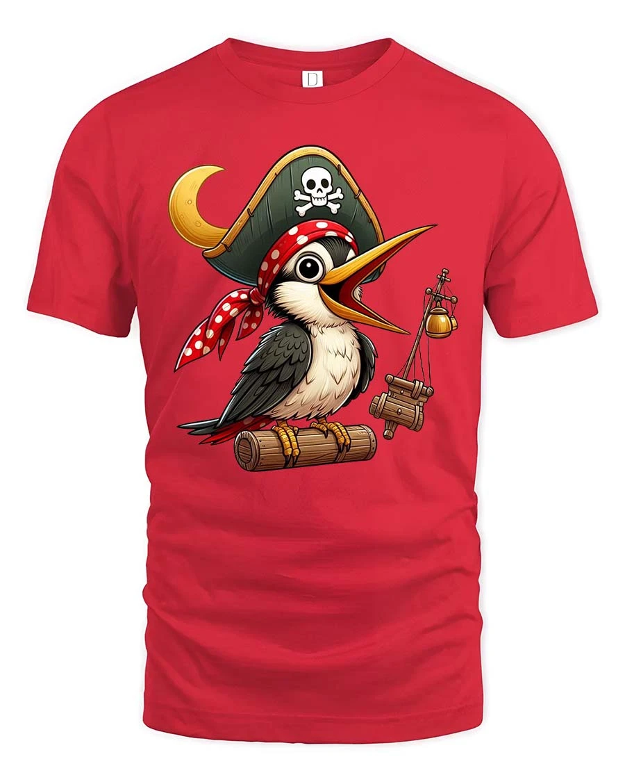 Funny Pirate Bird Cartoon Adventure Cute Graphic Tshirt - red t-shirt on white background