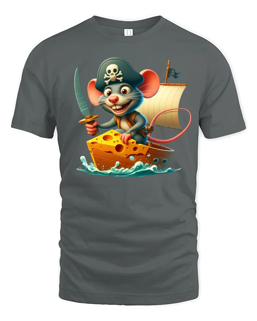 Featuring a cheerful mouse dressed as a pirate, sailing bravely on a cheese-shaped ship, this design perfectly blends humor, creativity, and adventure.