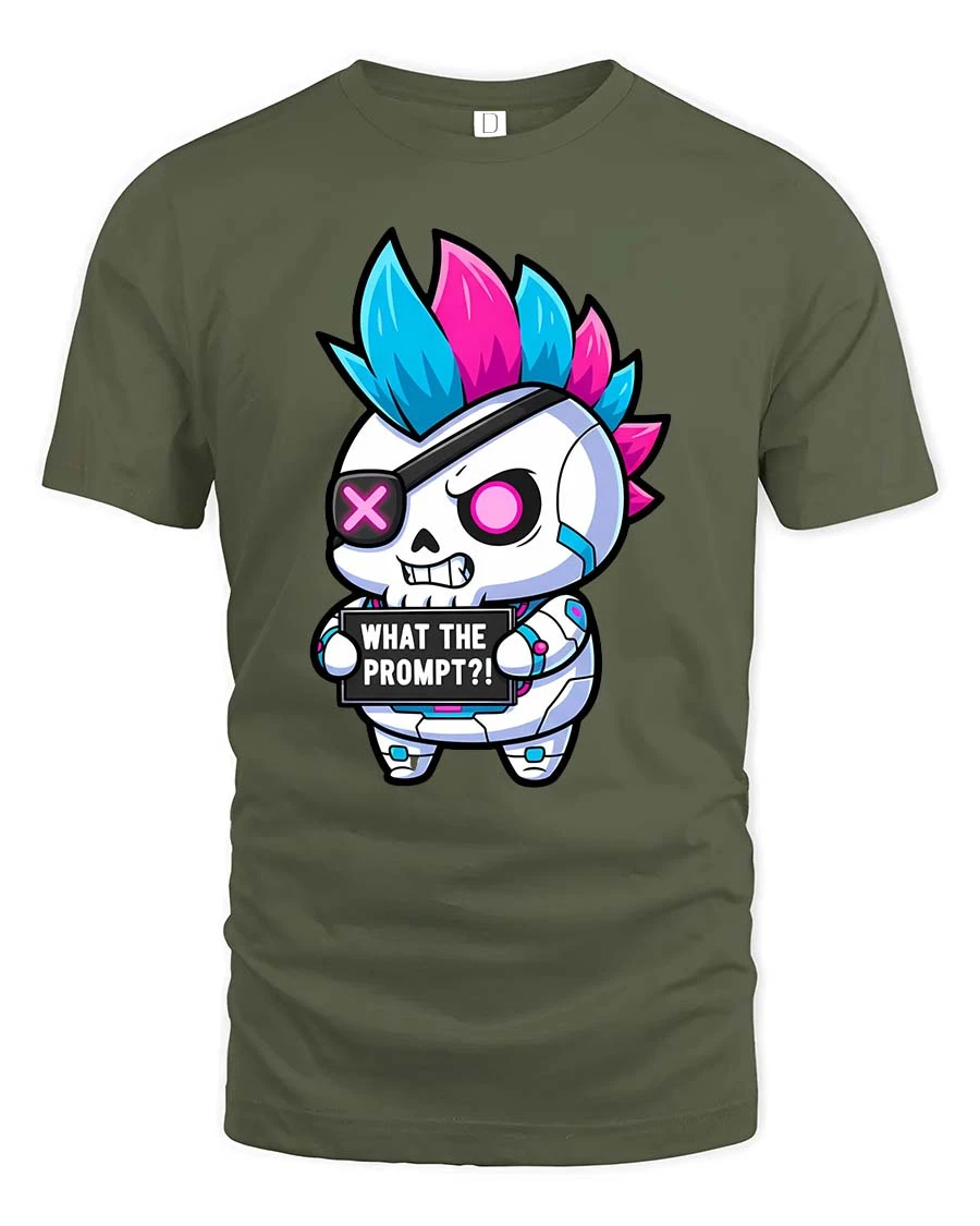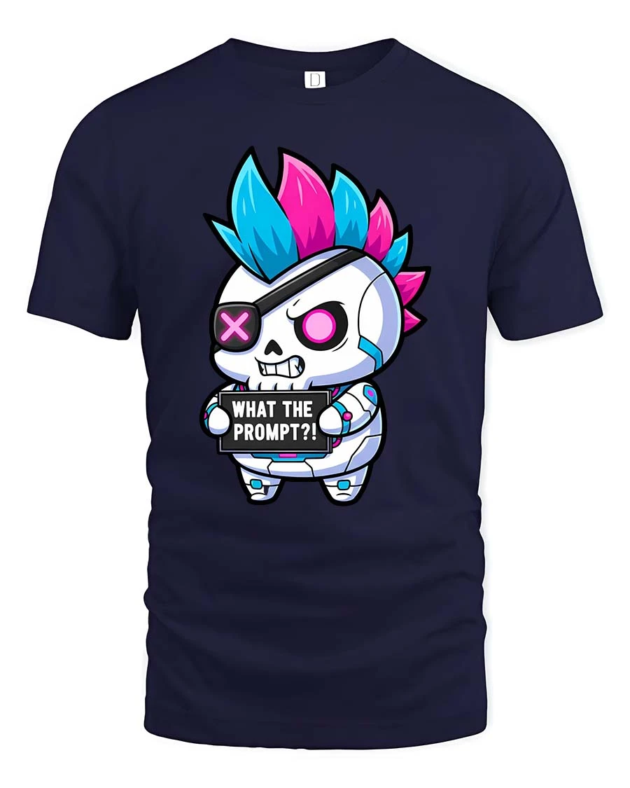 The vibrant mohawk skull character paired with a playful phrase brings a mix of edgy attitude and humor to your everyday style.