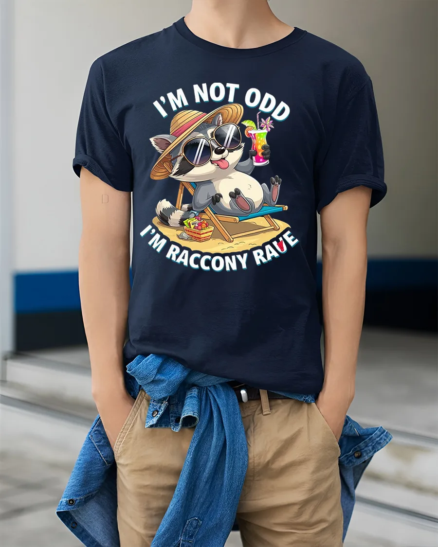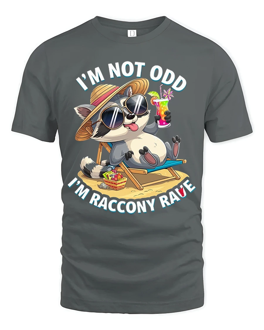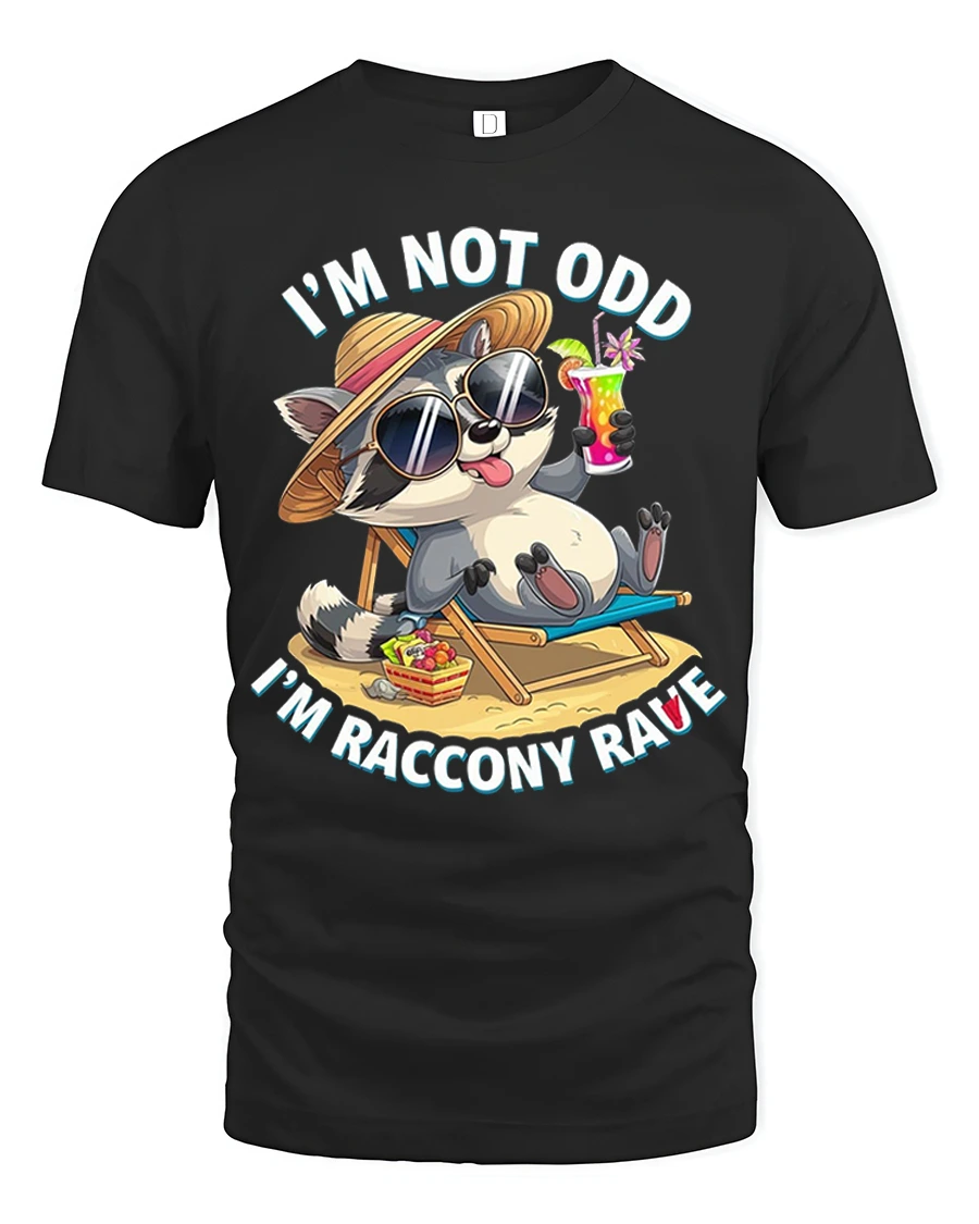 This Funny Raccoon Vacation I’m Racc Onny Rave Relax Tee brings playful humor and laid back beach vibes to your wardrobe. Featuring an adorable raccoon lounging on a beach chair with sunglasses, a wide straw hat and a colorful tropical drink, the design perfectly blends cuteness with comedy. The funny phrase “I’m Not Odd I’m Racc Onny Rave” adds a quirky twist that makes this tee a standout piece for anyone with a fun personality.