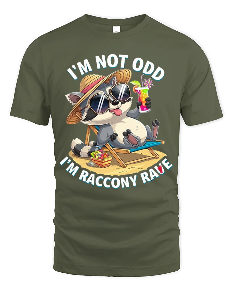 Funny Raccoon Vacation I’m Racc Onny Rave Relax Tee - military green t-shirt on white background